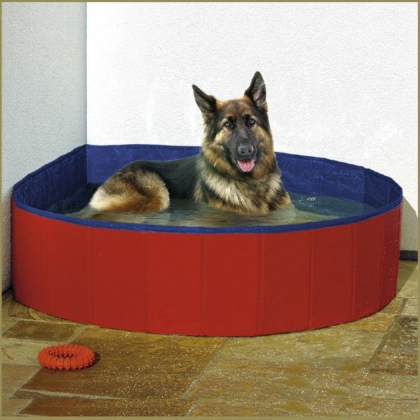 The karlie dog paddling pool doggy pool is assembled and disassembled in seconds. No air pump necessary. The pool's inner bottom has an anti-slip coating.