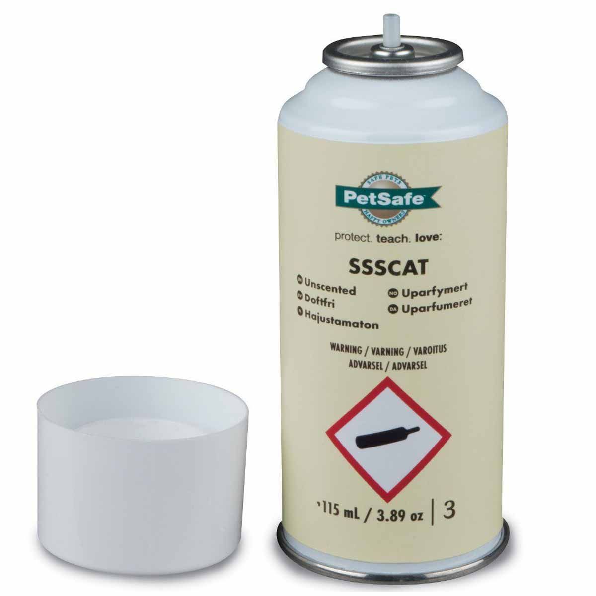 The original SSCAT refill is suitable for the petsafe cat repellent spray ssscat. The ssscat refill contains a propellant gas that is harmless for animals, humans and the environment. It does not contain any chemical propellant. The odorless spray leaves no stains, is ozone friendly and has no side effects.