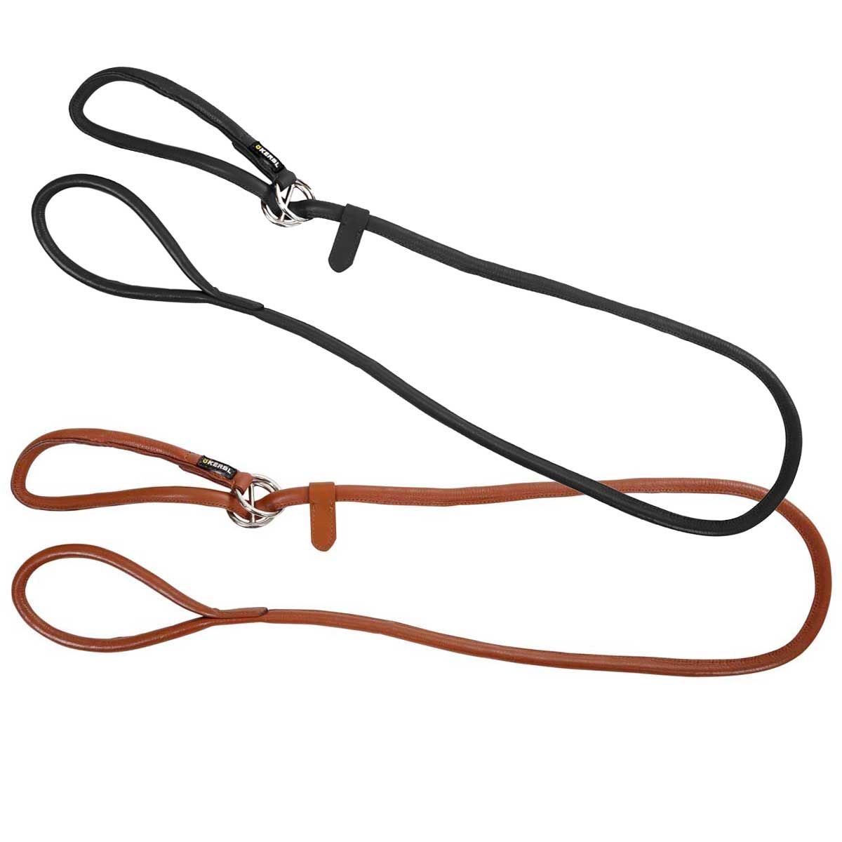 Round Leather Slip Leash Roma 170cm, 8mm, black