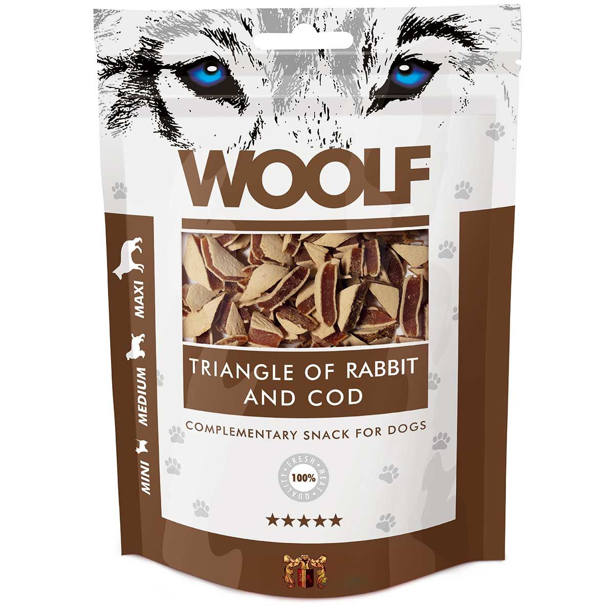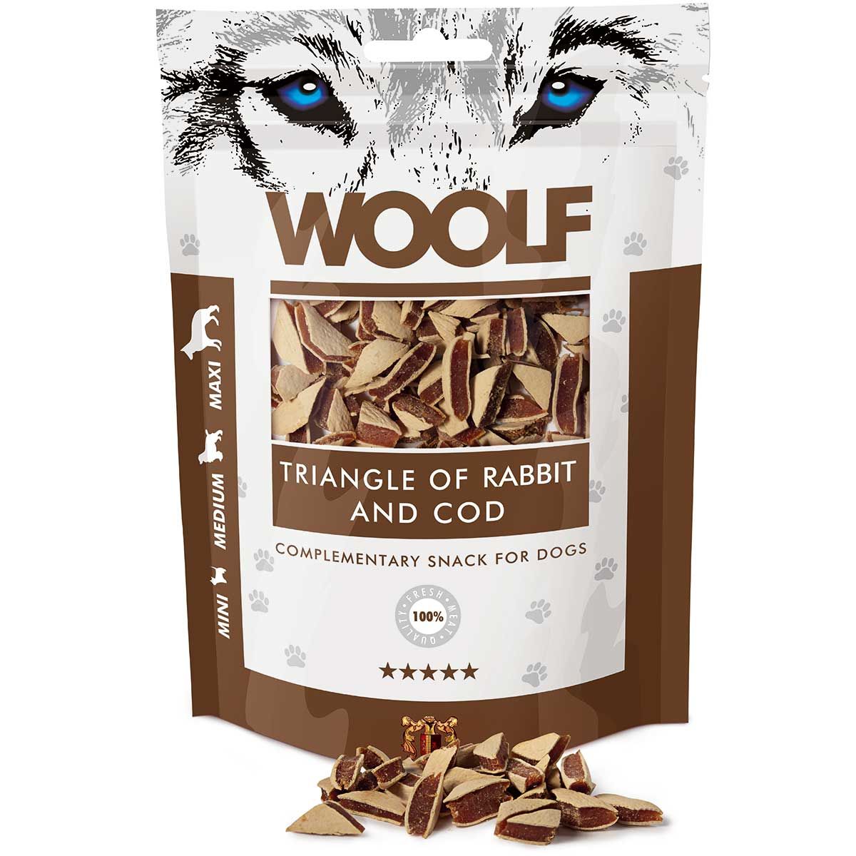 Woolf dog treats rabbit and cod triangles 100 g