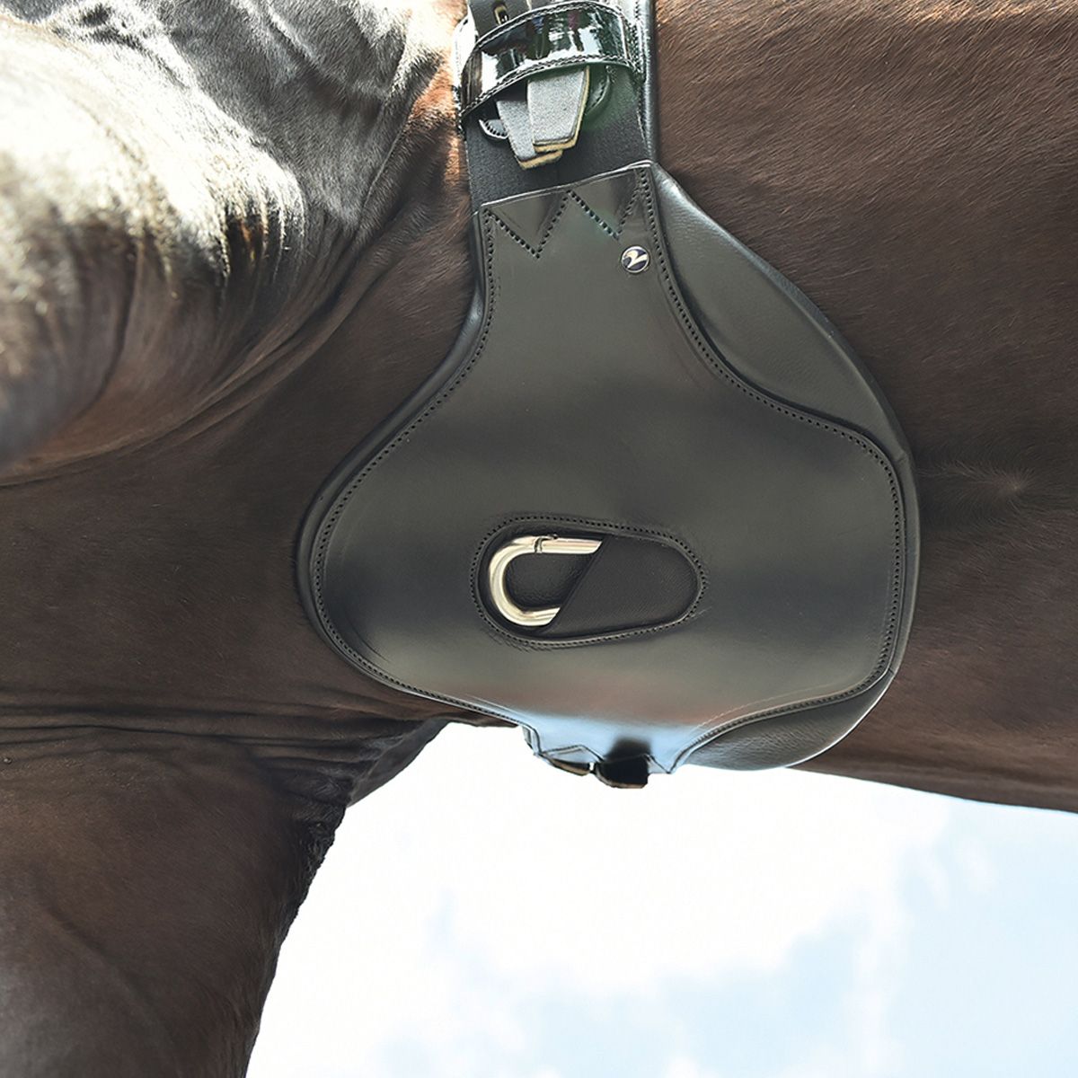 When strapping and re-strapping, make sure that the strap is as loose as possible and only tightened as much as necessary. The correct position of the belt must always be ensured. A flat hand should fit easily between the horse's body and the girth at about elbow height. In addition, the straps of the saddle should ideally be guided vertically downwards from the saddle girth, without pulling forward or backward, and the girth should rest evenly on the breastbone. Check the horse regularly for pressure and rubbing areas.