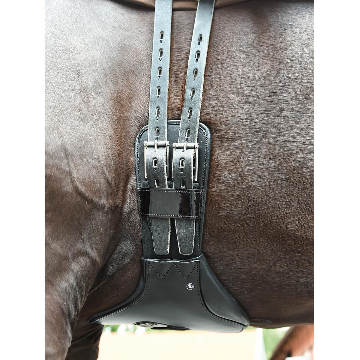 - beautifully designed short girth made of best saddle leather, refined with patent leather