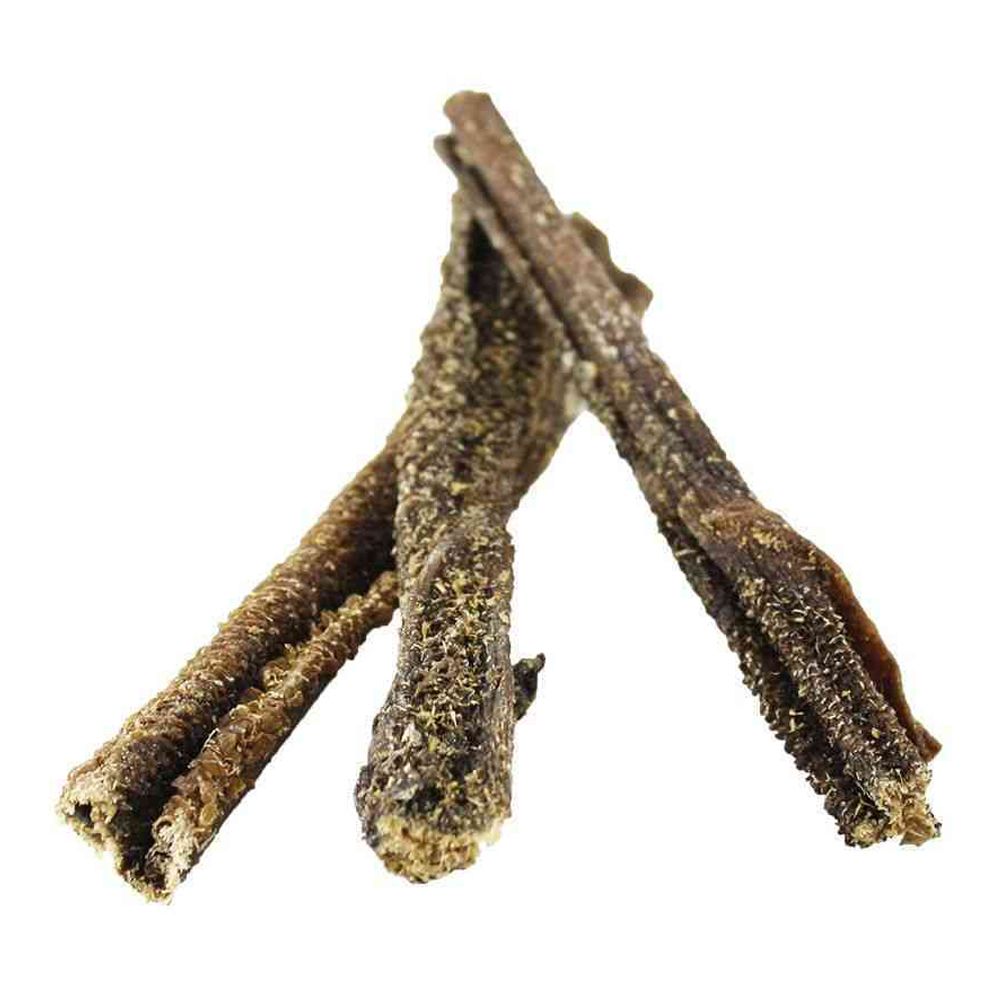 Lamb rumen is a tasty and popular chew for your dog. The rumen is made from 100% lamb and is gently air-dried and contains only natural ingredients, no addition of preservatives, colorings and flavorings. Due to this naturalness and originality is the natural chew the perfect alternative for allergy sufferers and dogs with intolerances. Because of its good digestibility it is also suitable for dogs with sensitive stomachs. Lamb rumen makes for a healthy, species-appropriate treat that's great as a reward and for employment suitable. It also has a beneficial effect on the intestinal effect. In addition to the chewing fun, the lamb rumen naturally cleans the teeth, trains the dentition and tartar is effectively rubbed off by chewing. Your four-pawed friend will be happy!