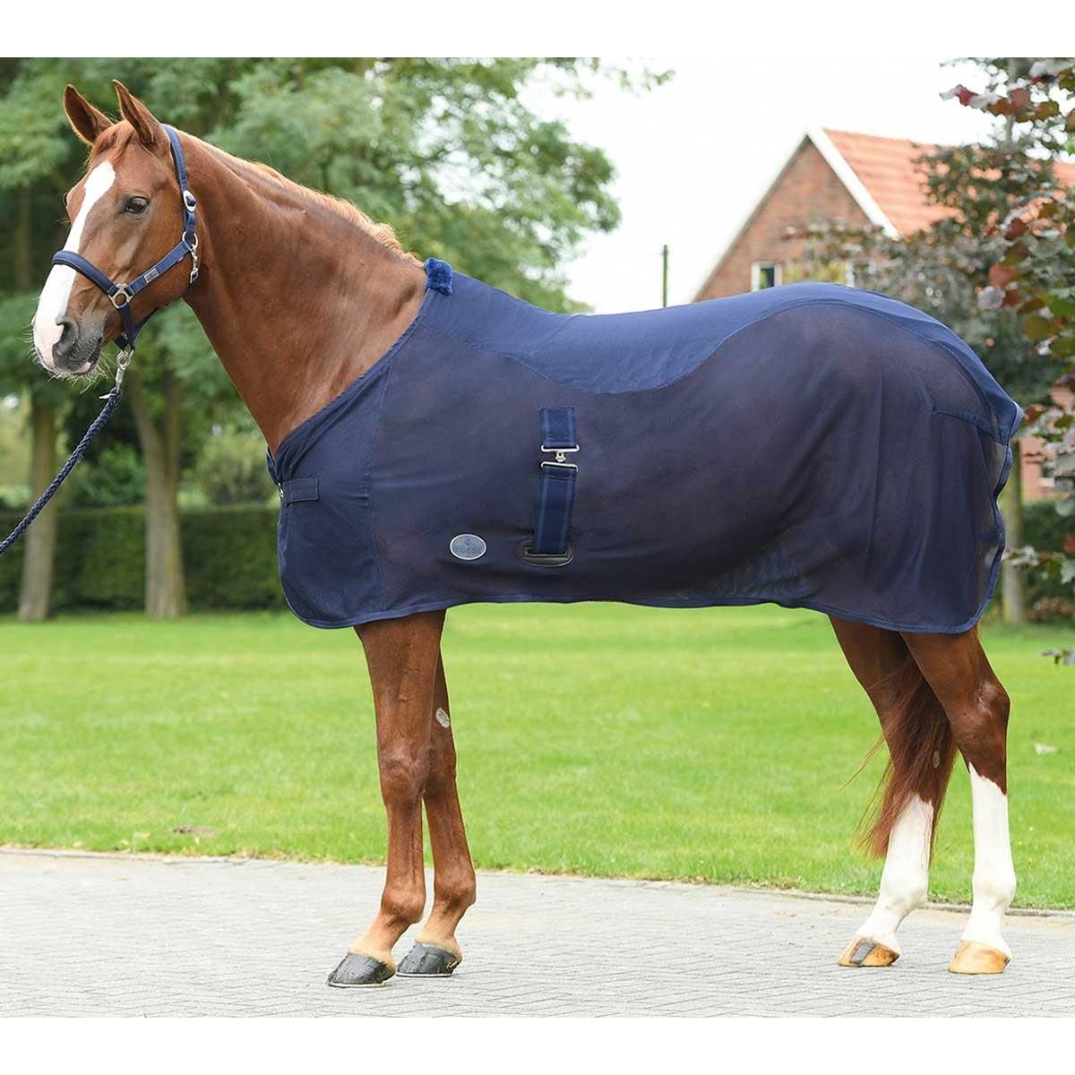 The fly cover SUMMER-FLY II by BUSSE is the ideal sweat and fly rug for the summer months. Fly protection and breathability are united in a blanket. The highly breathable blanket is made of quick-drying polyester fleece on the back, which also optimally tempers your horse. At the bottom, the blanket is made from a durable netting that keeps out flies and other biting insects. The T-buckle and the integrated, removable elastic strap provide the best grip. The soft withers cushion and the elastic insert ensure high comfort in the horse blanket.