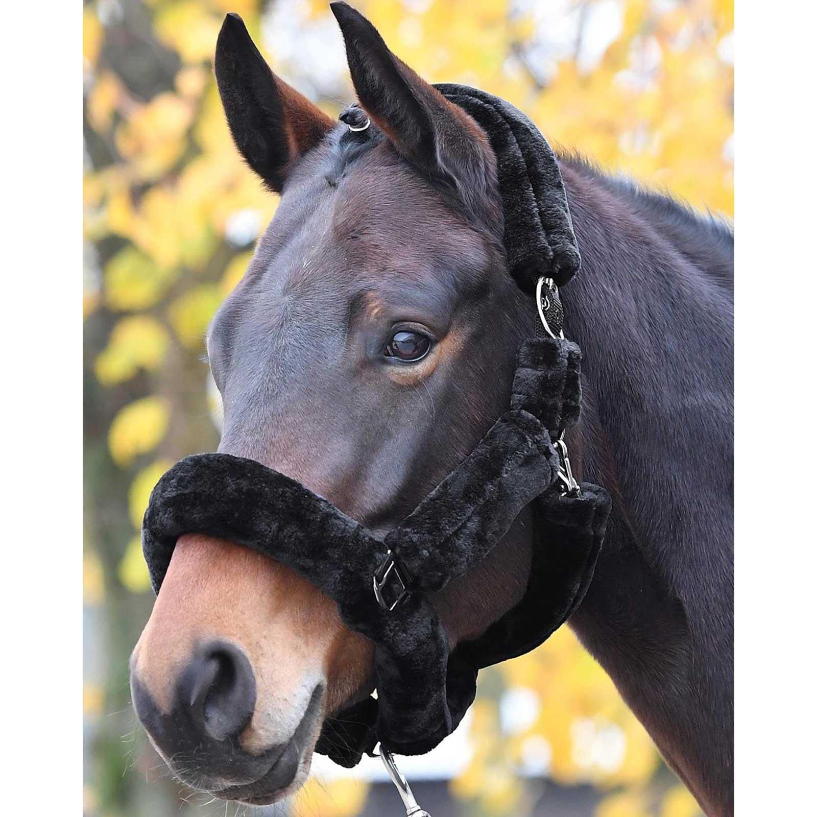 - doubled webbing headcollar completely covered with thick, soft faux fur