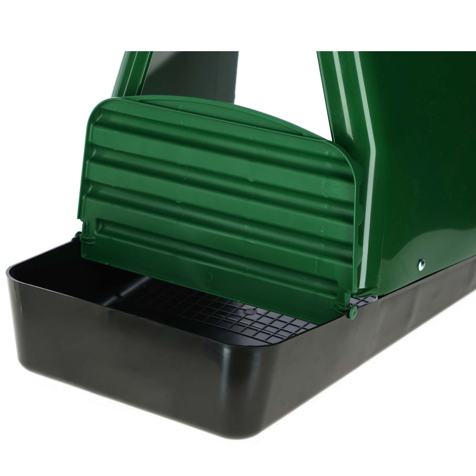 The collection tray is made of very strong plastic. The black lid of the collecting tray can be opened and allows easy access to the laid eggs. The plastic laying nest is easy to clean and improves the hygiene in your henhouse permanently.