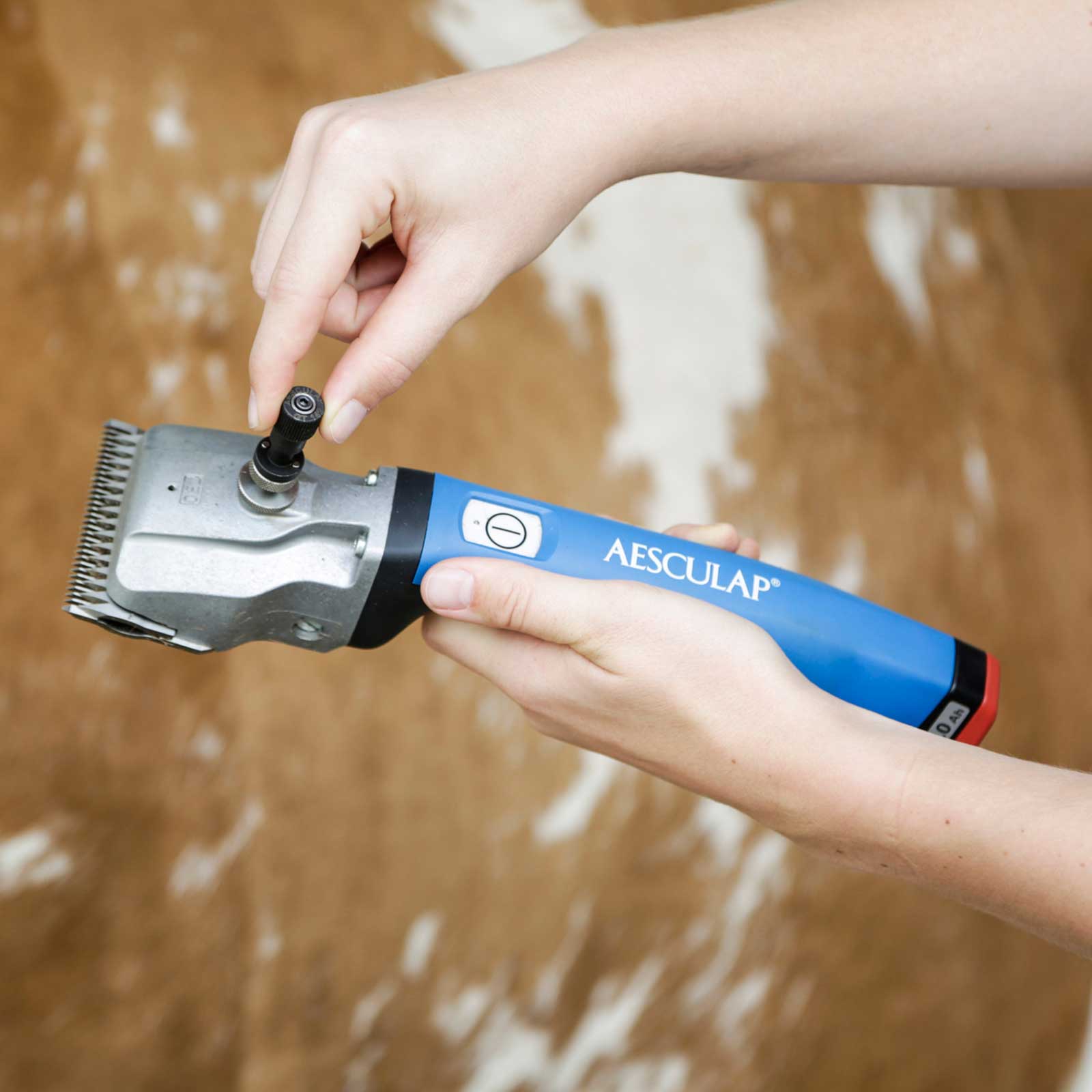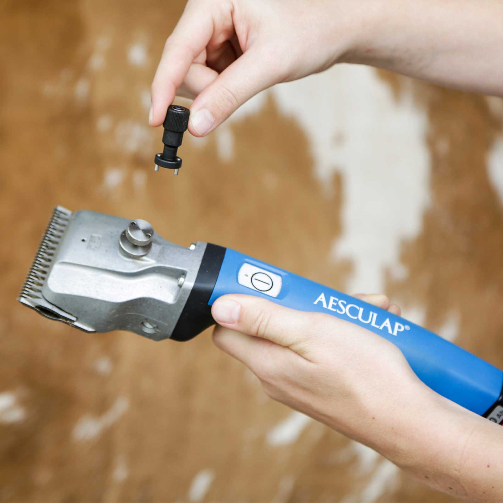 The clipping plate pressure of Aesculap cattle/horse clippers is child's play to adjust with this innovative "torque key".*