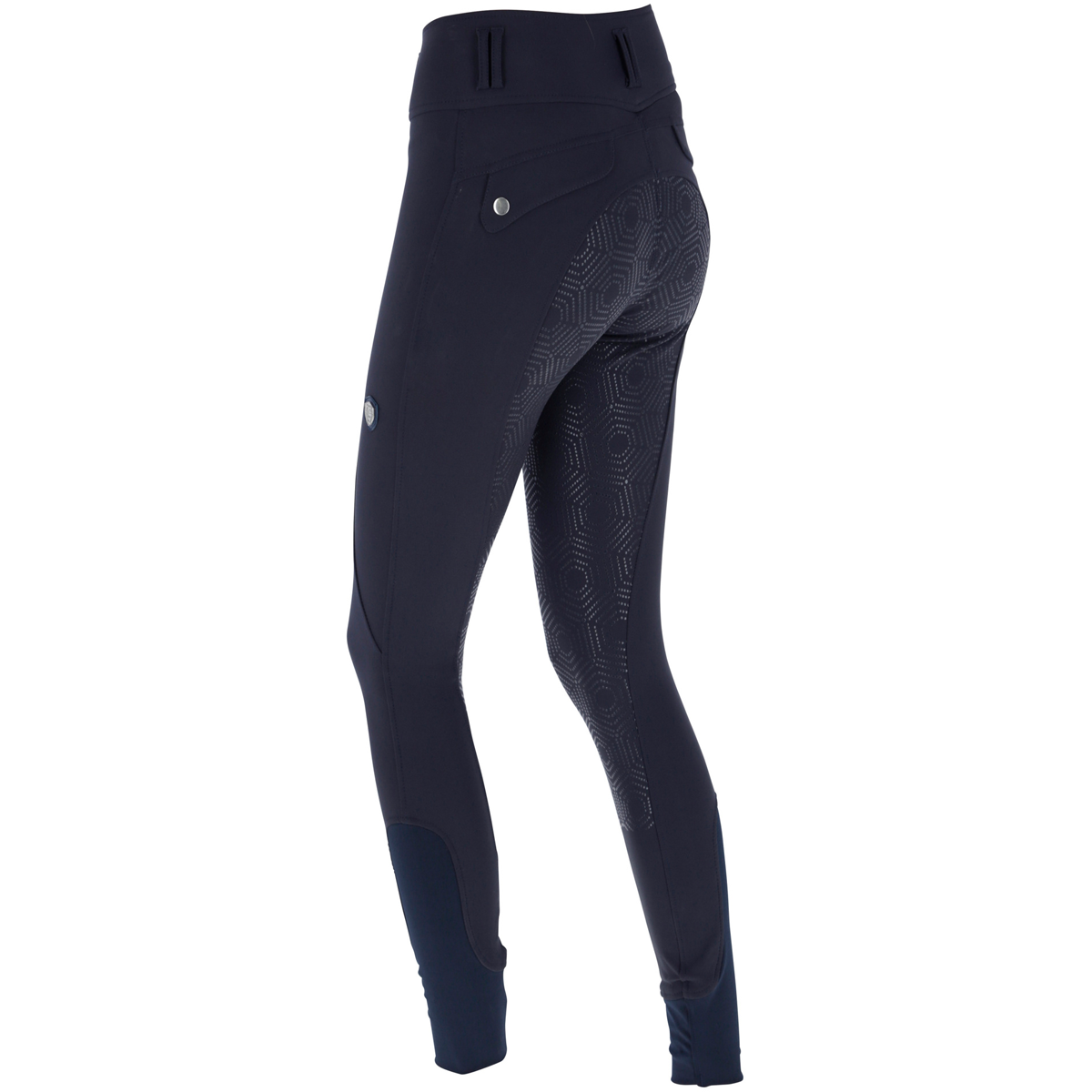 The Covalliero breeches HighWaist are light, extremely elastic, dimensionally stable breeches with lots of extras. The extremely elastic and super comfortable breeches for women with high waist waistband in an elegant design leave nothing to be desired. Thanks to the many practical pockets, you can safely stow the car key, mobile phone and many treats. The full silicone seat with Covalliero grip made of non-slip pressure ensures the best contact with the horse. The Covalliero breeches are available in dark gray or dark blue.