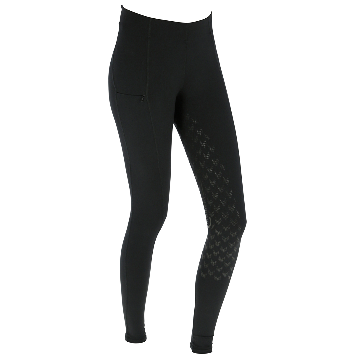 Our bestseller shines in a new shine. The trendy full seat riding legging from Covalliero is incredibly comfortable thanks to the new waistband. Developed for riders who are looking for lightweight, extremely elastic breeches and want to do without unnecessary equipment. Equona will be able to show its full benefits especially in the warm and hot summer months when thick and heavy materials fail! The full seat made of anti-slip pressure ensures the best contact with the saddle. The practical zip pocket on the side offers enough space for the key, money or treats.
