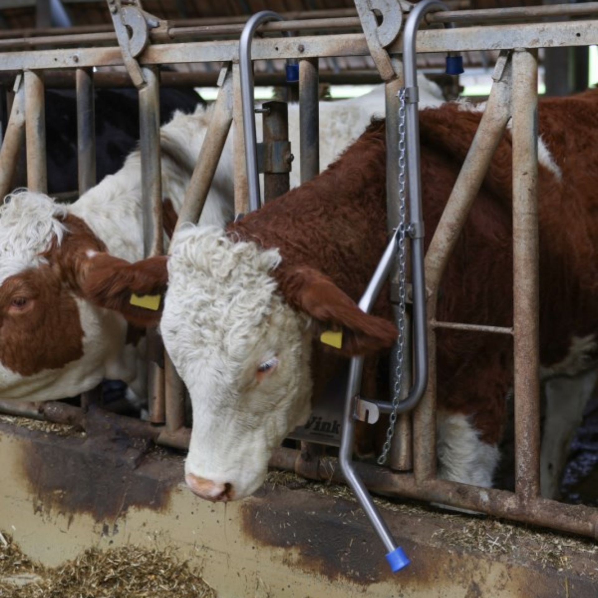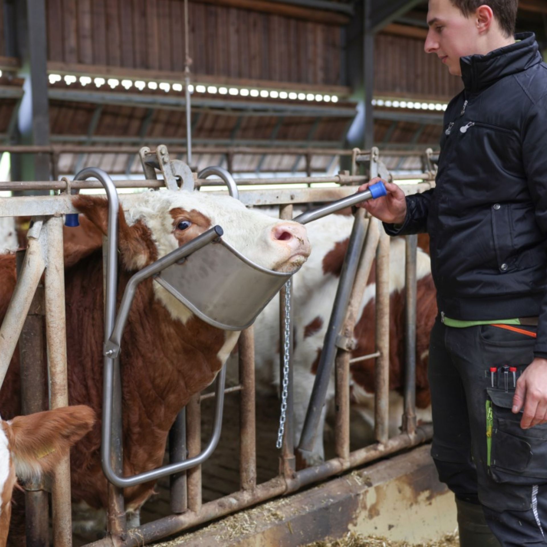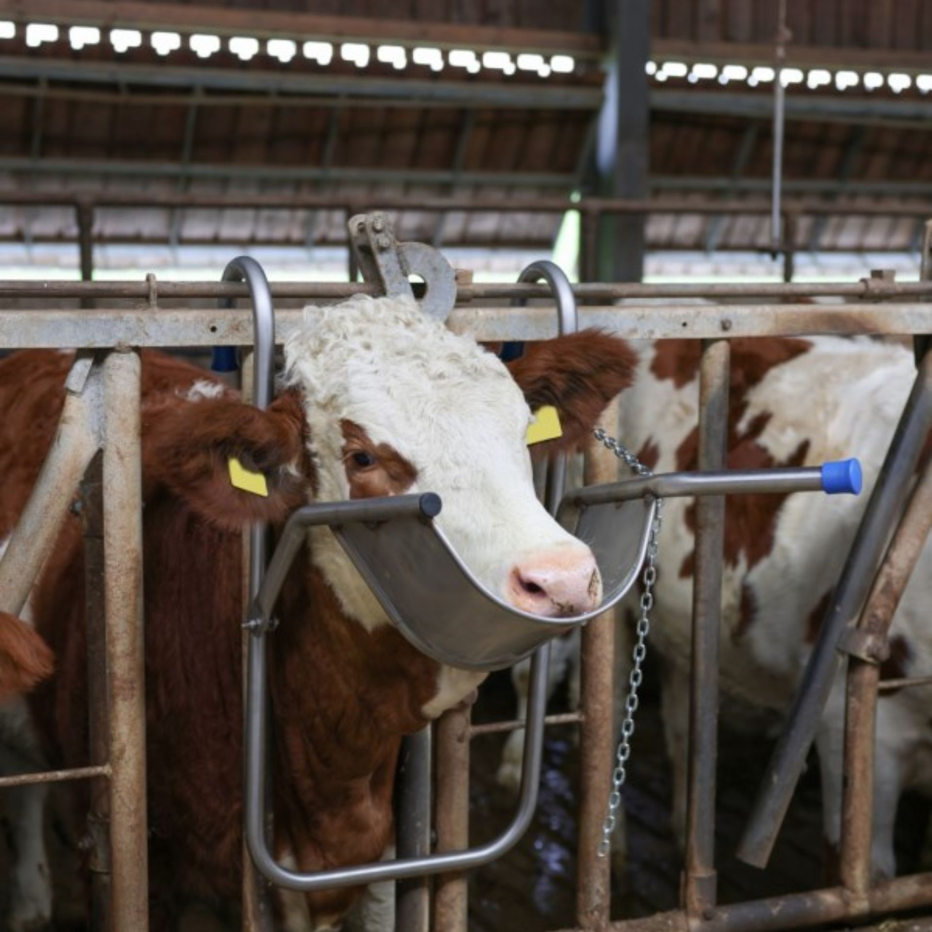 The practical headrest for cattle can be attached to the feed fence and facilitates treatments and the entry of medication or feed.