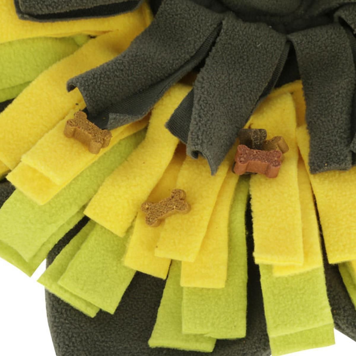 The dog and cat sniffing carpet offers many different options to hide dry food, treats or toys and thus keep your dog busy for hours. The sniffing mat also helps the animal to concentrate and reduces stress and prevents hasty eating.