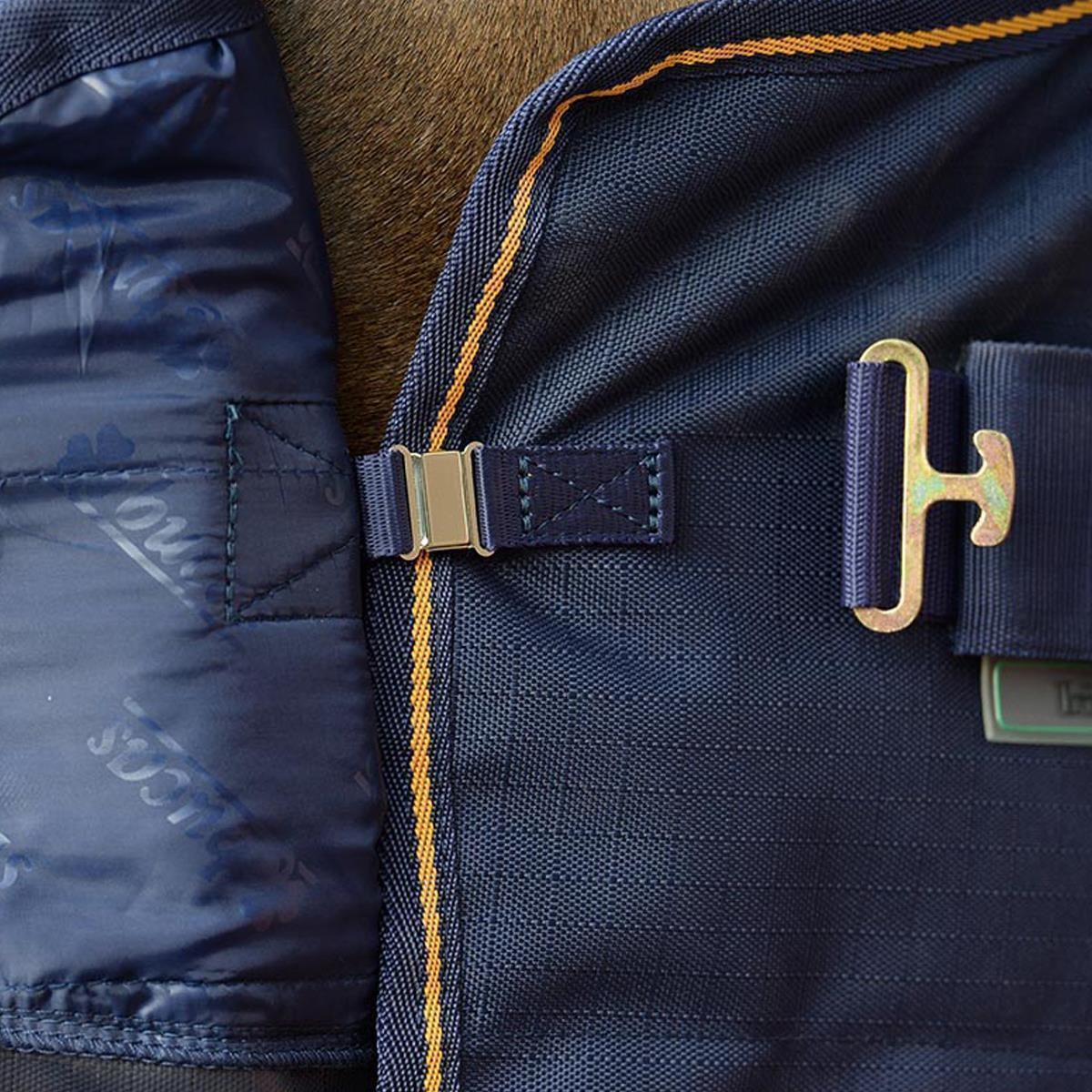 The breathable "Silk-feel" inner lining and the shoulder gussets provide the horse with a high level of comfort and optimum freedom of movement when worn. The Irish Turnout horse blanket also features an overlapping comfort closure with padded buckle.