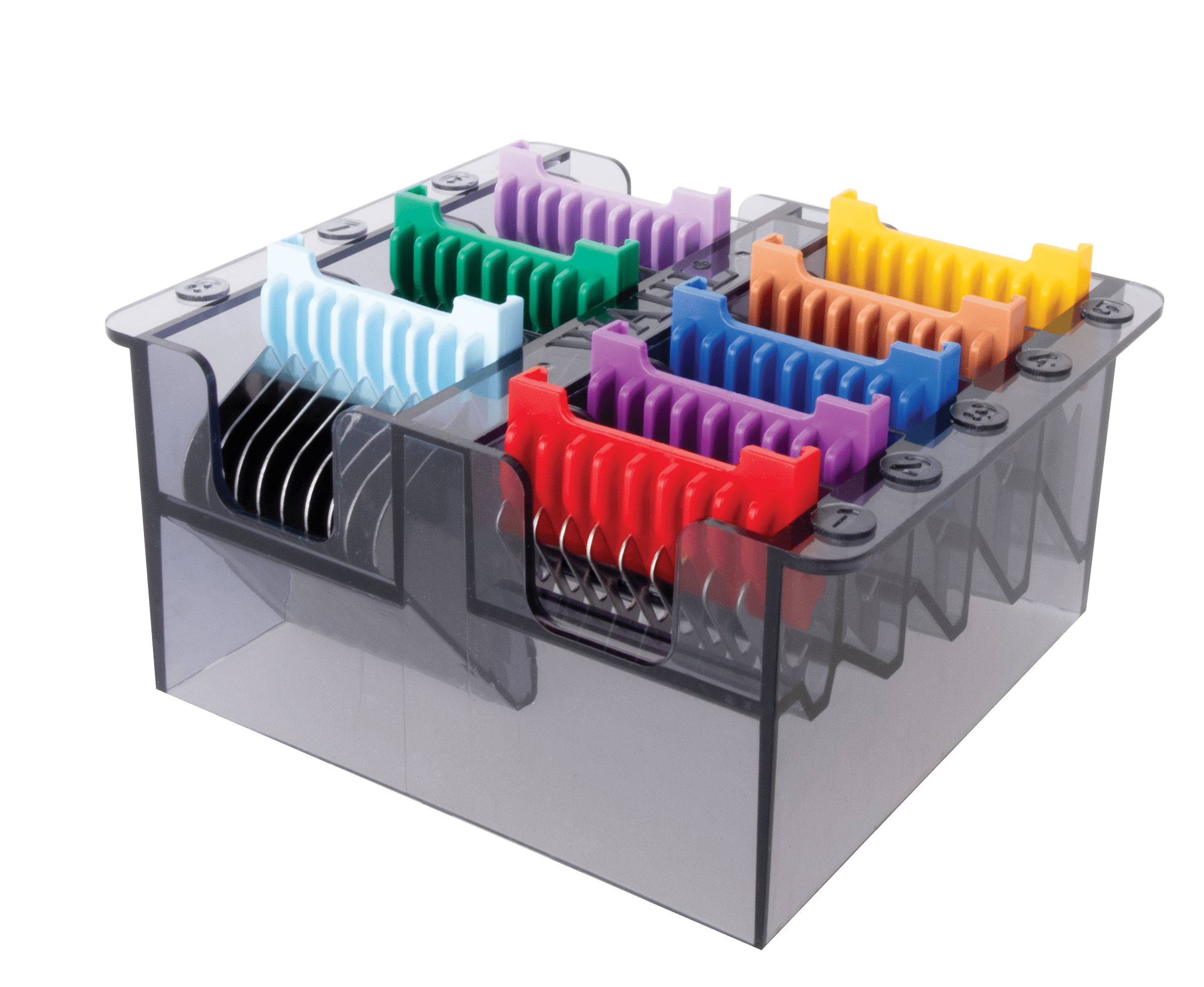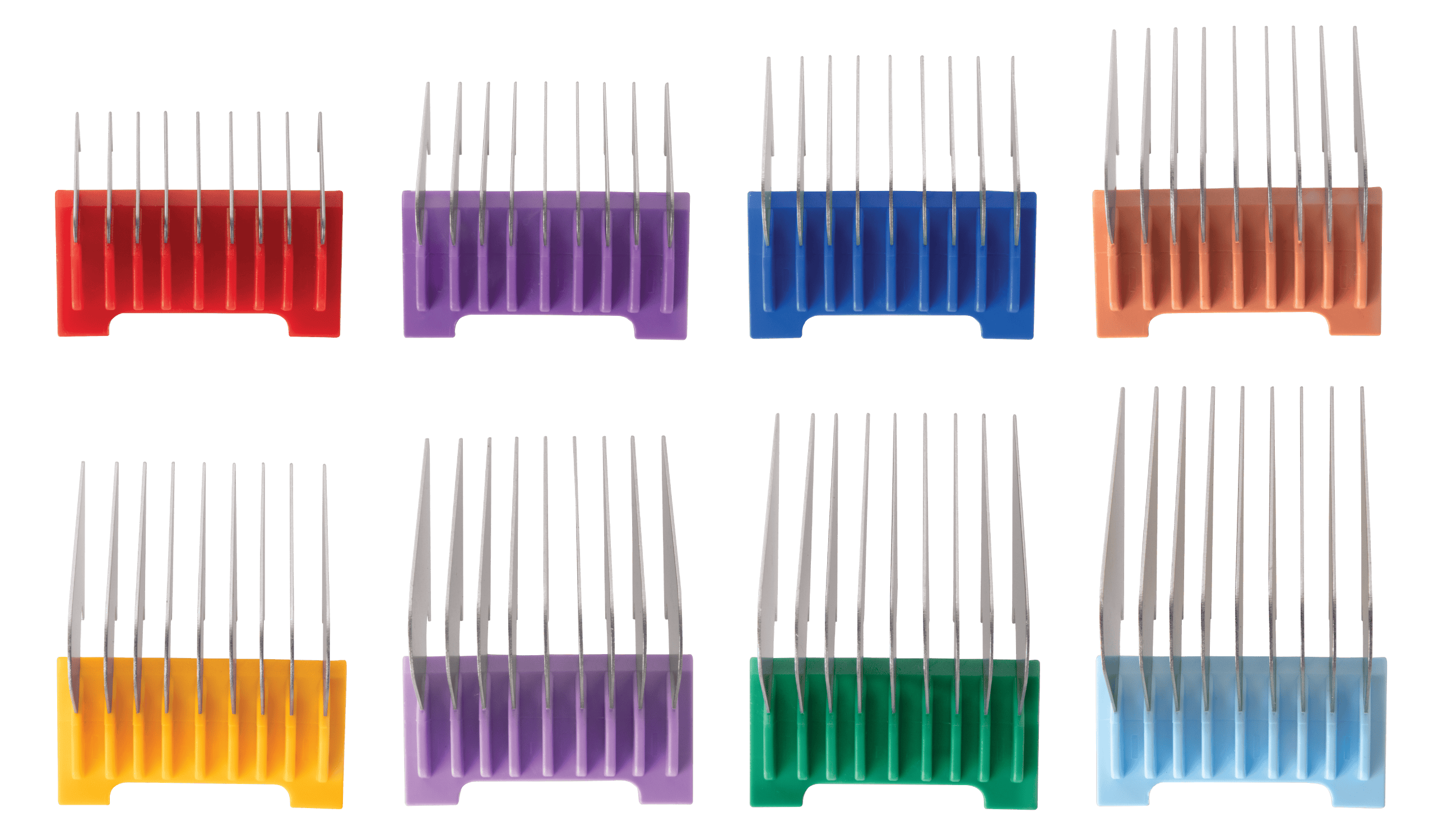 With this set you have 8 different push-on combs at your disposal. From short to long, the right attachment for every coat length is ready with just one handle.