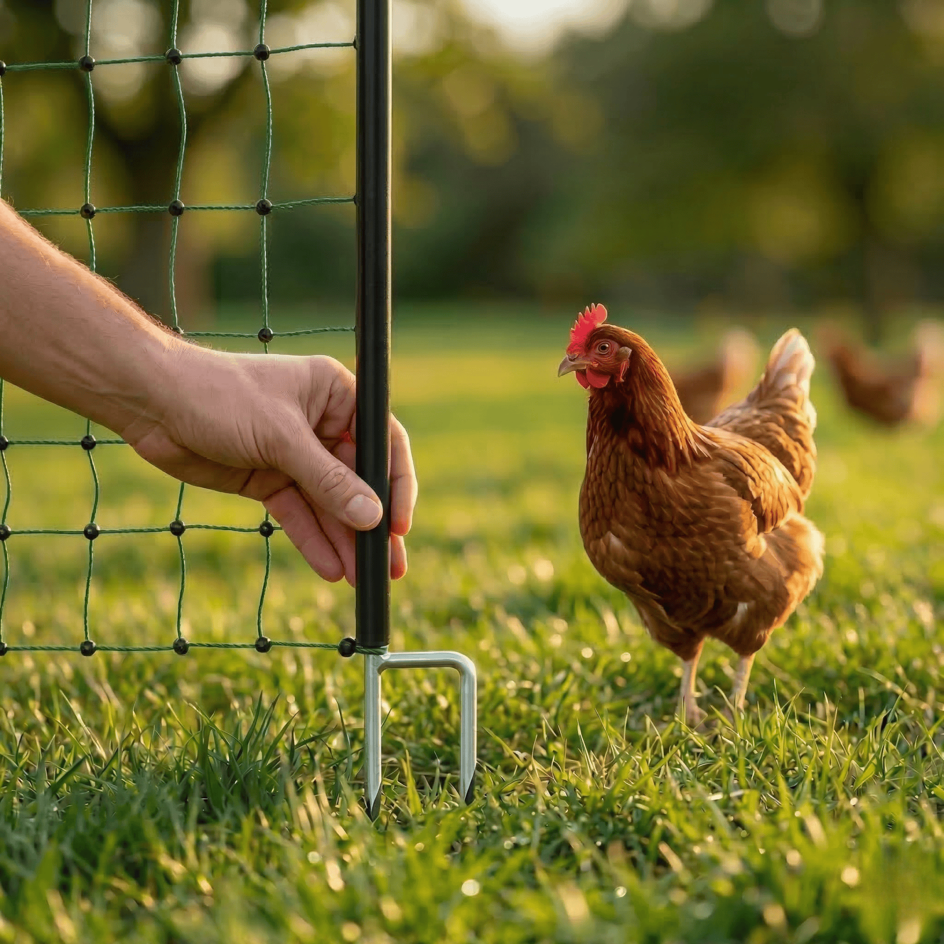 Order + set up + protect chickens: With our top pasture net for poultry farming you can fence your chickens safely. Optionally electrify with a pasture fence device.