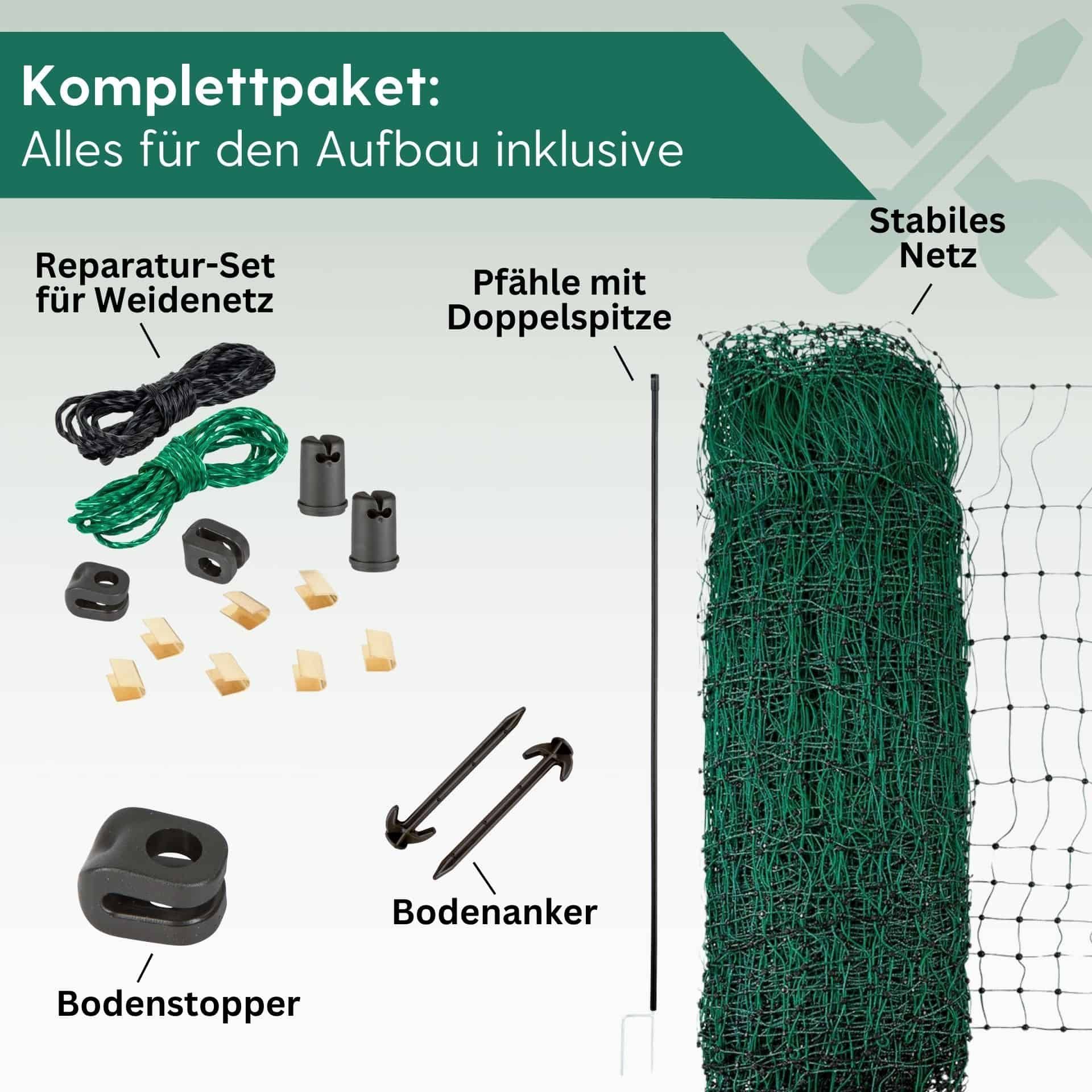Build easily and quickly a safe run for your chickens with our mobile top pasture net with excellent price-performance ratio. The stable poultry net has in the lower area narrow meshes which makes the net especially interesting for keeping e.g. chickens, turkeys or ducks. In addition to the narrower meshes, sagging of the net is prevented by the reinforced upper strand. The pasture net is easy to set up, expand and dismantle. The chicken fence without electricity can be easily extended with other nets or a gate for pasture fence nets. The assembly and disassembly of the pasture net is done in a matter of seconds so that the net is also perfect for short grazing periods. It can be easily rolled up and stored to save space.