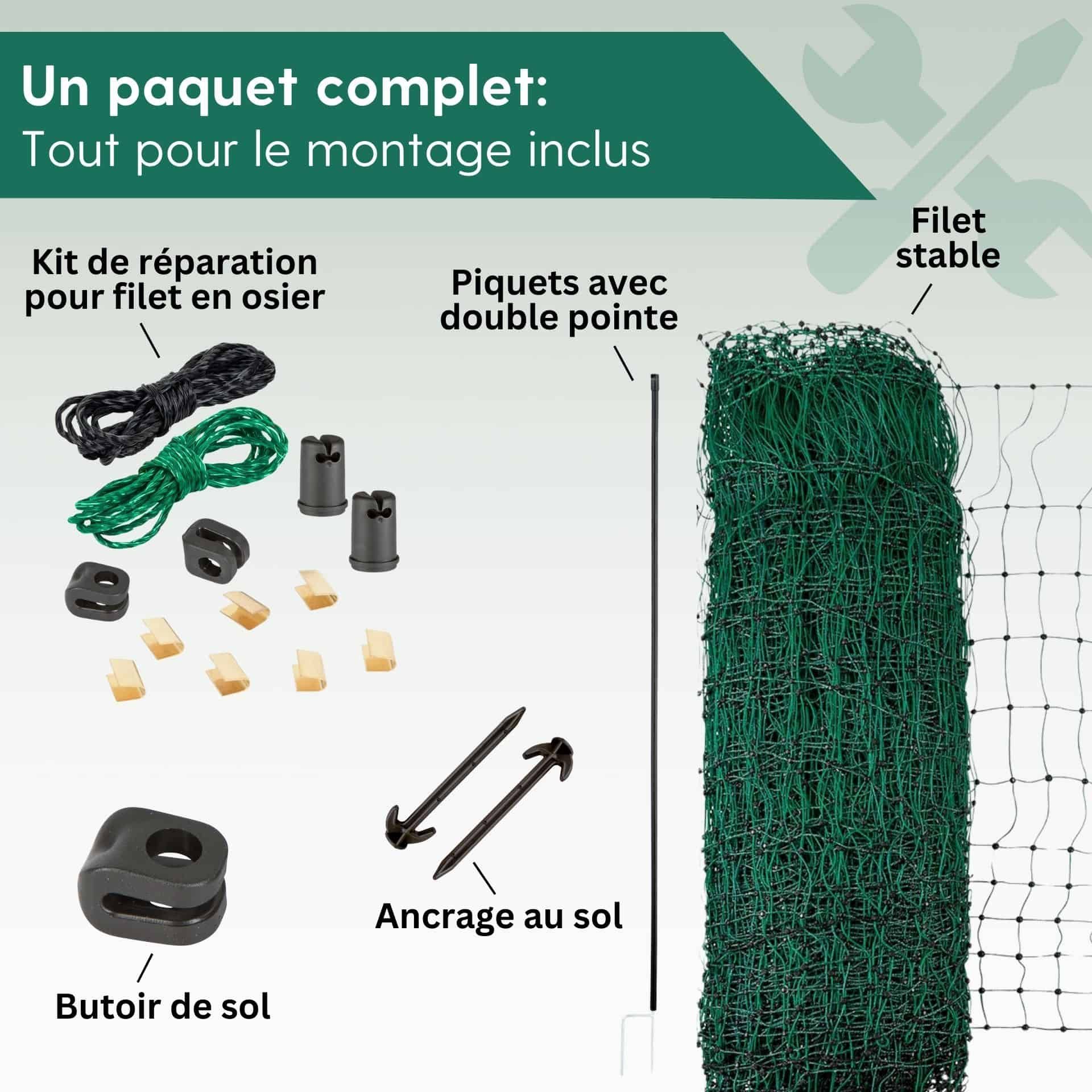50 m x 112 cm with 15 plastic stakes