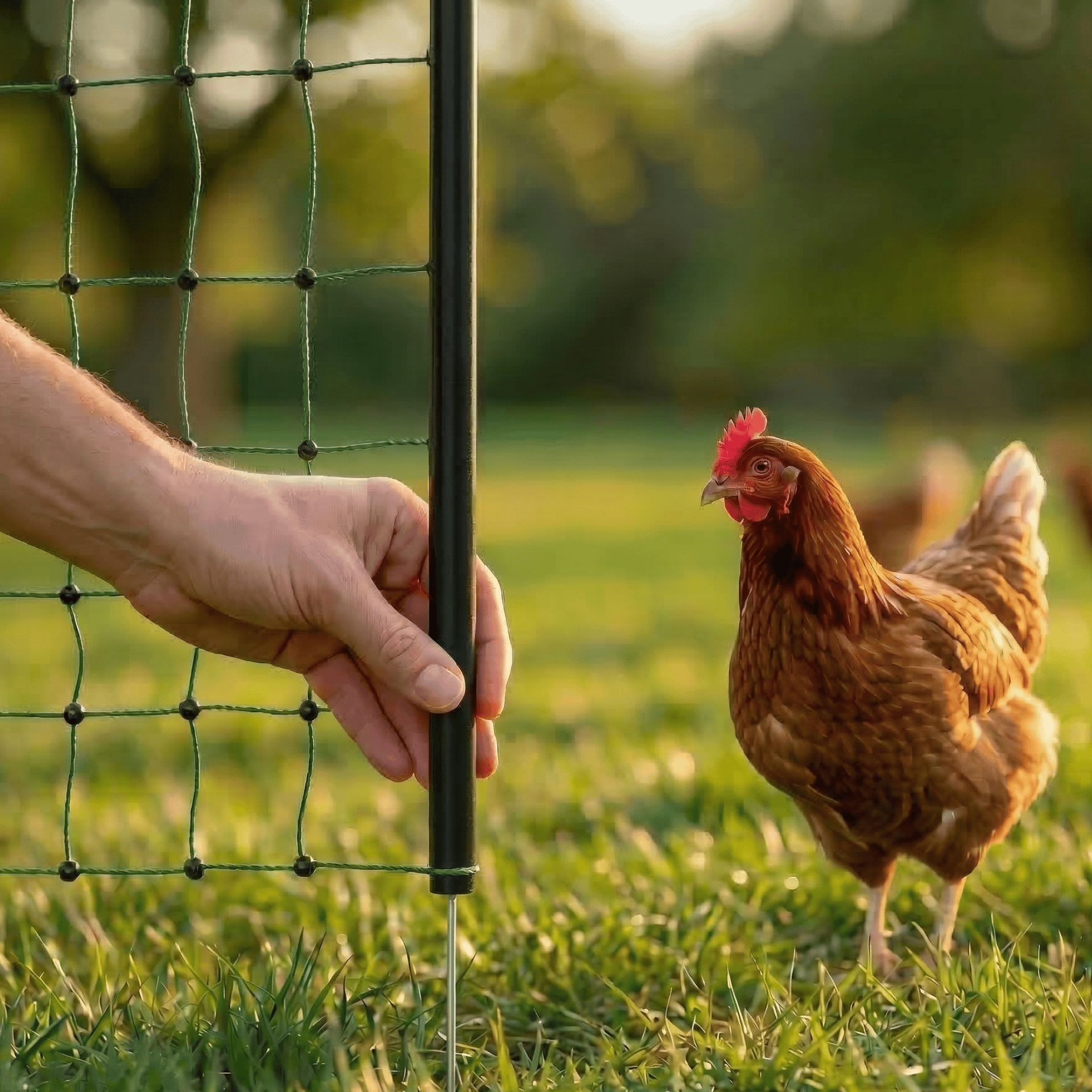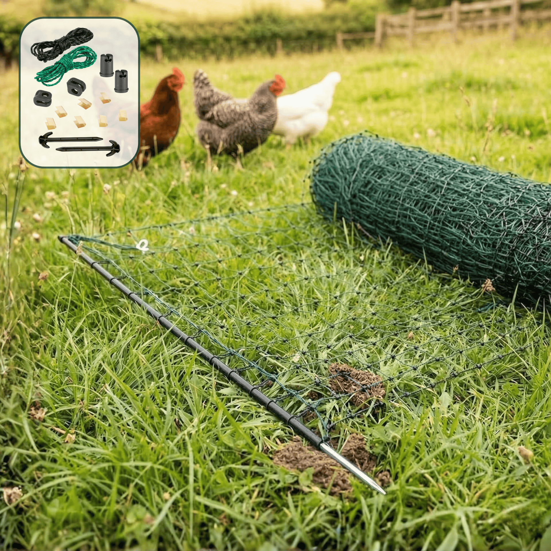 - Head insulator and ground stopper provide secure hold for the poultry net