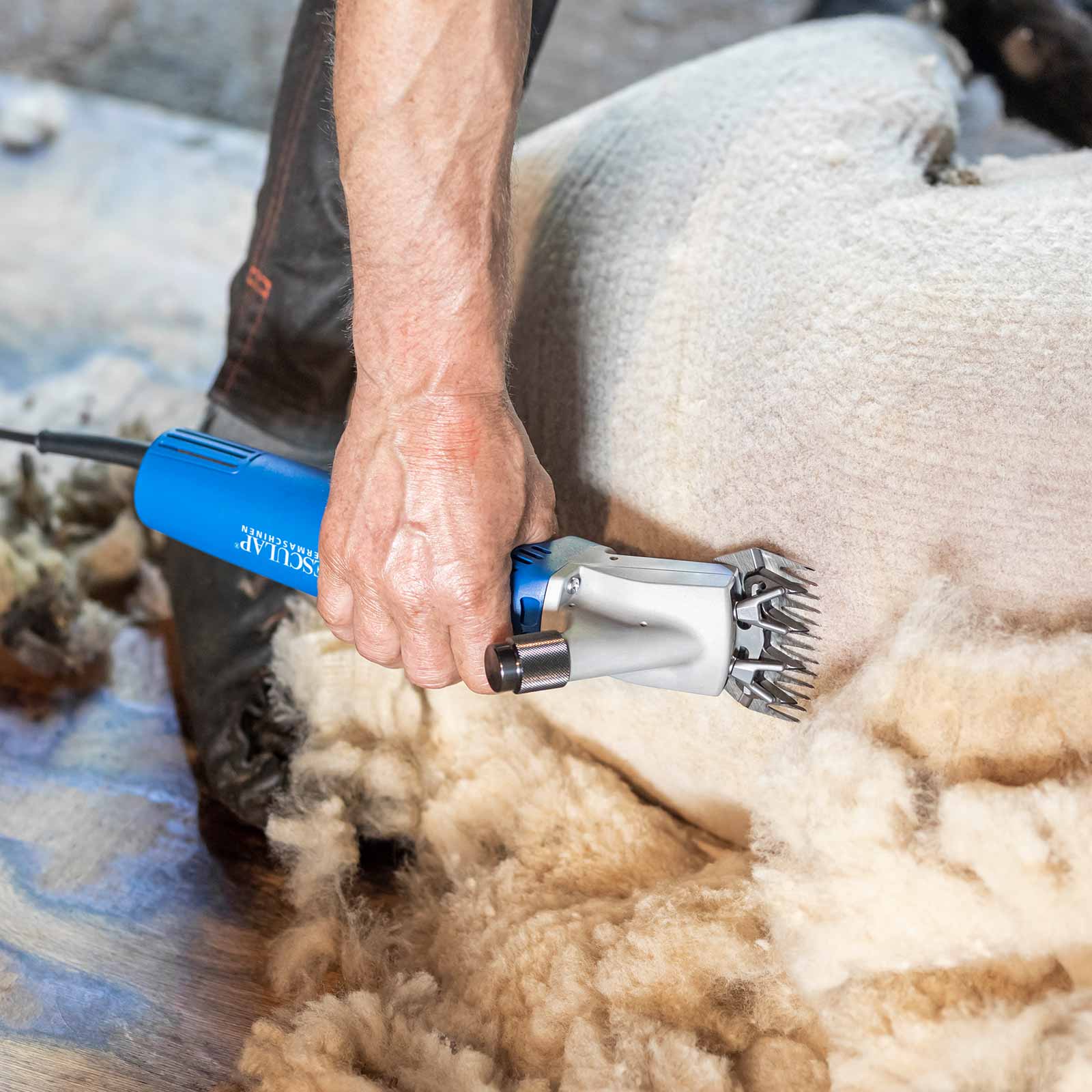 Shearing sheep is made easy with the Econom NOVA Sheep shearing machine. The shearing machine is suitable for full shearing of sheep, angora goats and similar animals with thick, woolly coats. The powerful high-performance motor with 2.750 strokes/min manages even the largest coat hurdle and allows the clipper to glide consistently through the coat. The slim housing and the weight balance promise low-fatigue and ergonomic handling even during long periods of use.