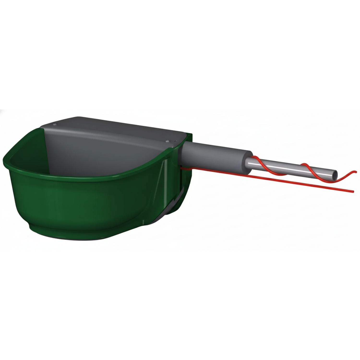 The heatable float drinker provides fresh drinking water even in winter. The drinking bowl has an integrated and easily replaceable heating cable and an additional heating cable for an approx. 2 metre long pipe. A frost protection thermostat switches the heating cable on at +3 °C and off again at approx. +13 °C. This prevents frost from forming and ensures a reliable water flow even at sub-zero temperatures of up to approx. -15 °C. The cover on the underside of the drinking bowl and the closed design in the area of the valve inlet have an insulating effect and prevent the heat given off by the heating cable from escaping.