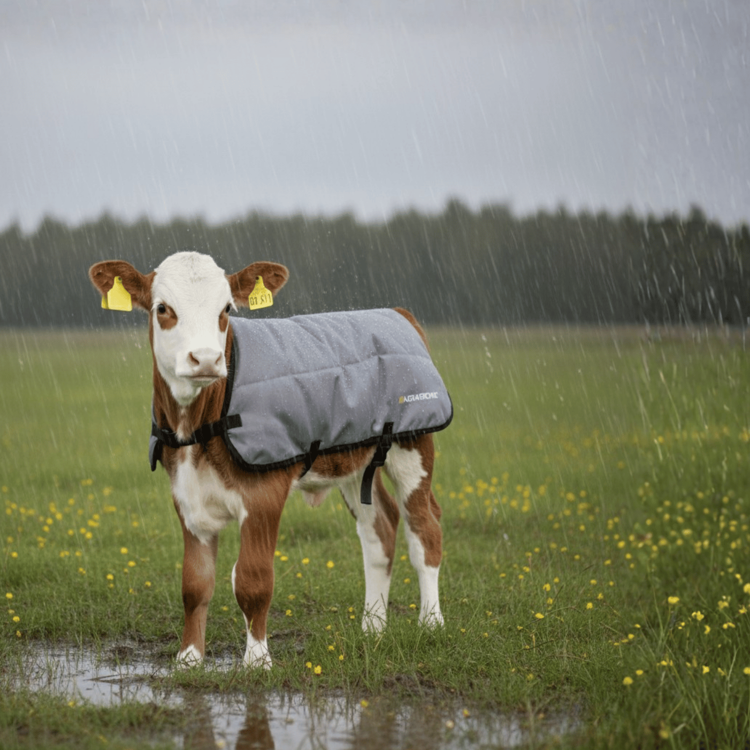 The Agrarzone Calf Blanket provides cold protection and supports the immune system of newborn calves, which is highly stressed in cool weather. The thermal blanket prevents diarrhoea and other health problems. It is made of tear-resistant 600 denier polyester ripstop and is therefore very robust and durable. The blanket for calves is waterproof up to 3000 mm water column and machine washable at 30 °C. It is equipped with nylon straps and a waterproof cover. It is equipped with nylon straps and plastic clip fasteners, so the cow blanket is optimally held on the calf's back. The breathable properties prevent the calf from sweating excessively.
