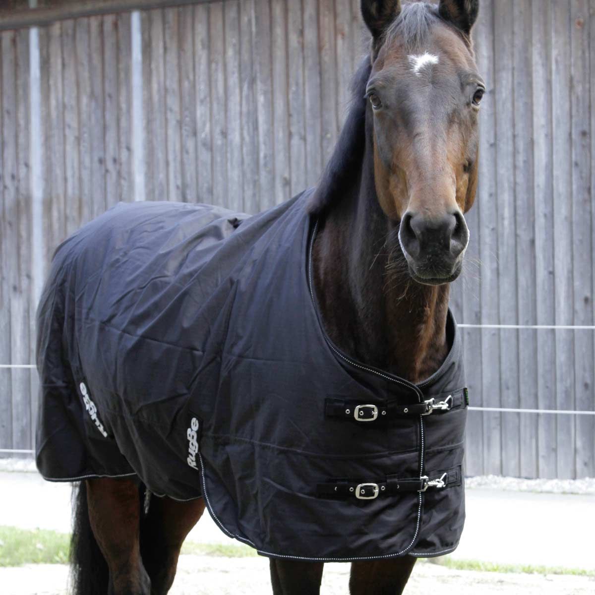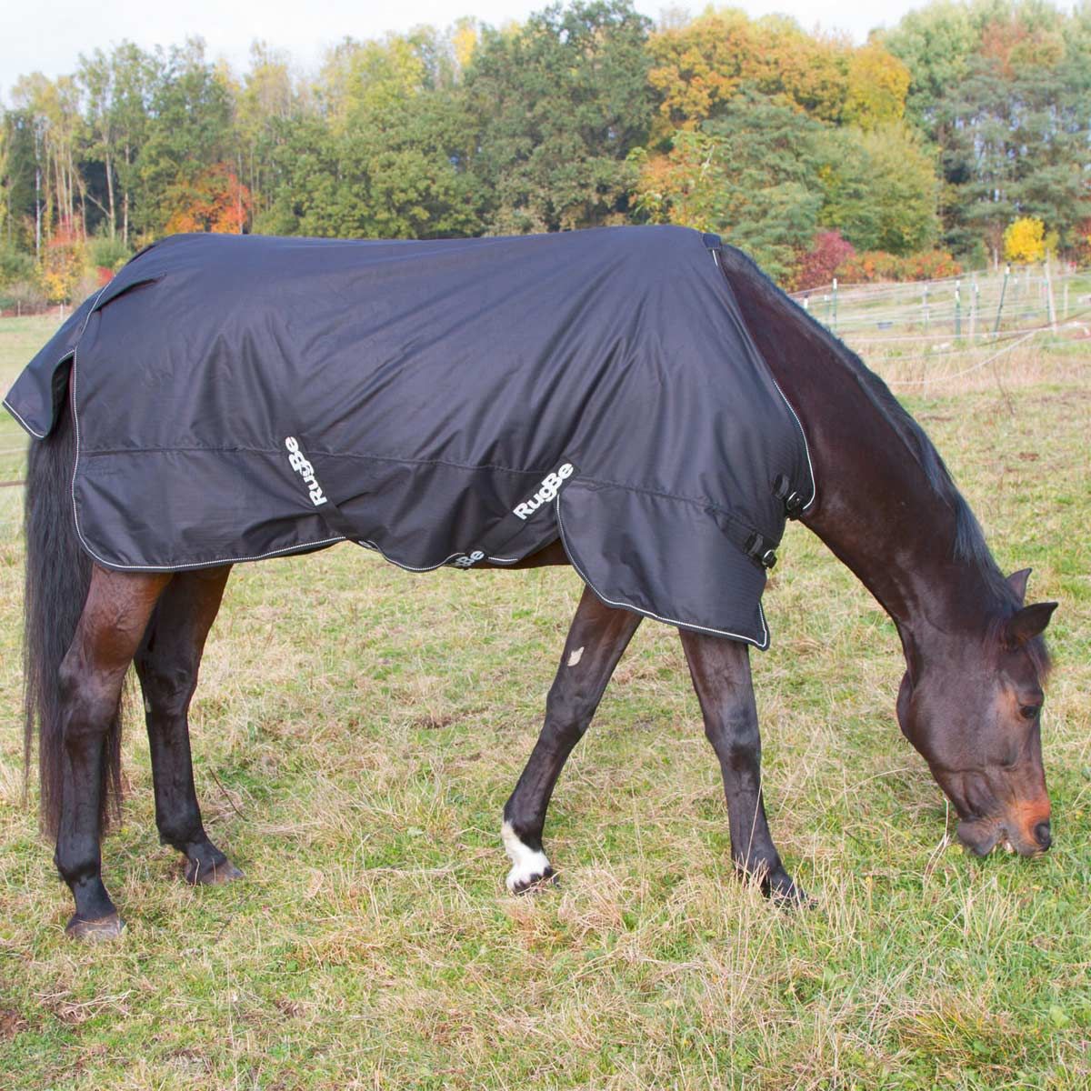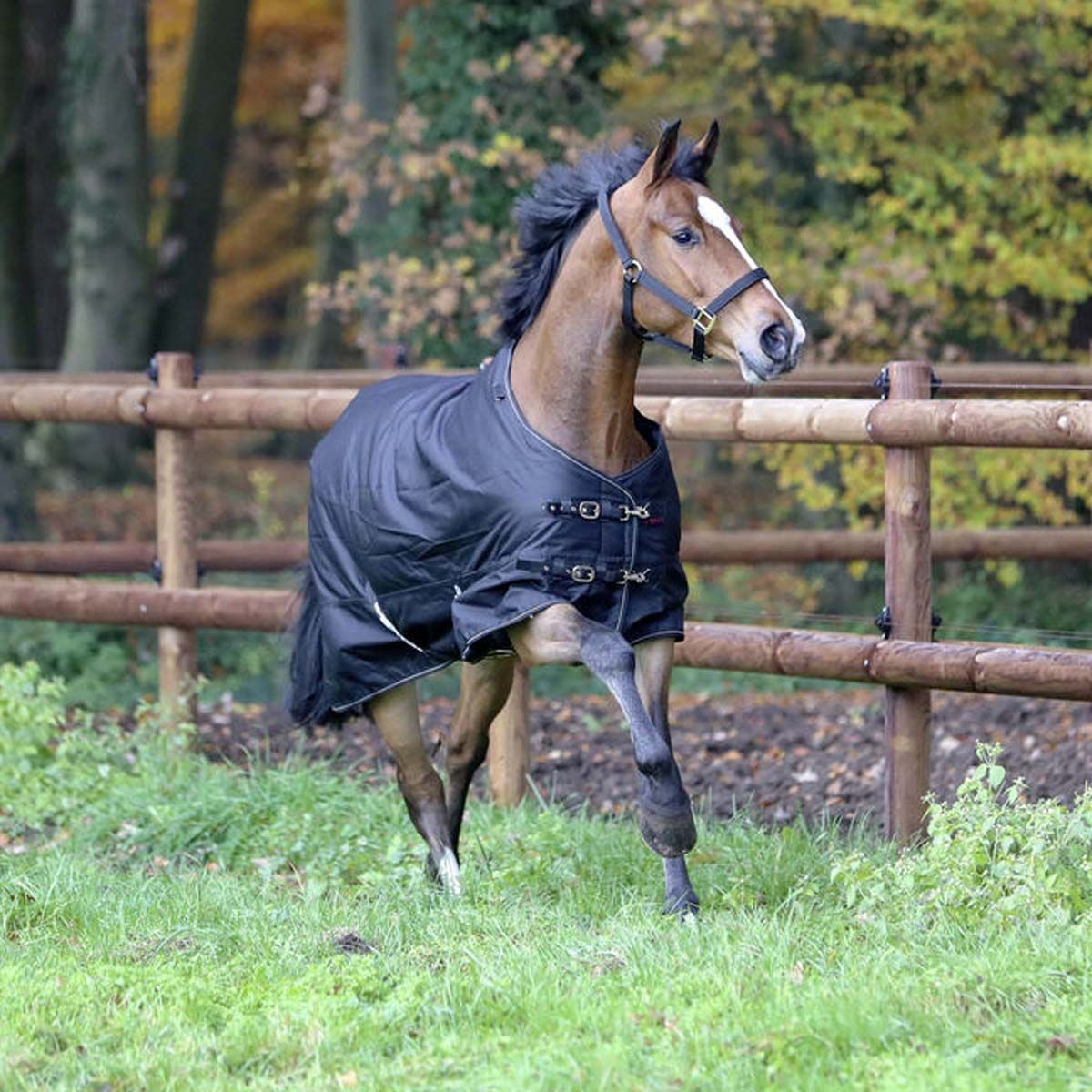 The Covalliero horse rug RugBe 200 is the perfect horse rug for wet cold autumn and winter days. The horse blanket combines optimal fit and sufficient freedom of movement. The waterproof winter blanket keeps the horse dry outside and at the same time ensures temperature compensation. On the one hand, the newly developed mattress allows space-filling movements of the horse and on the other hand ensures an optimal fit.