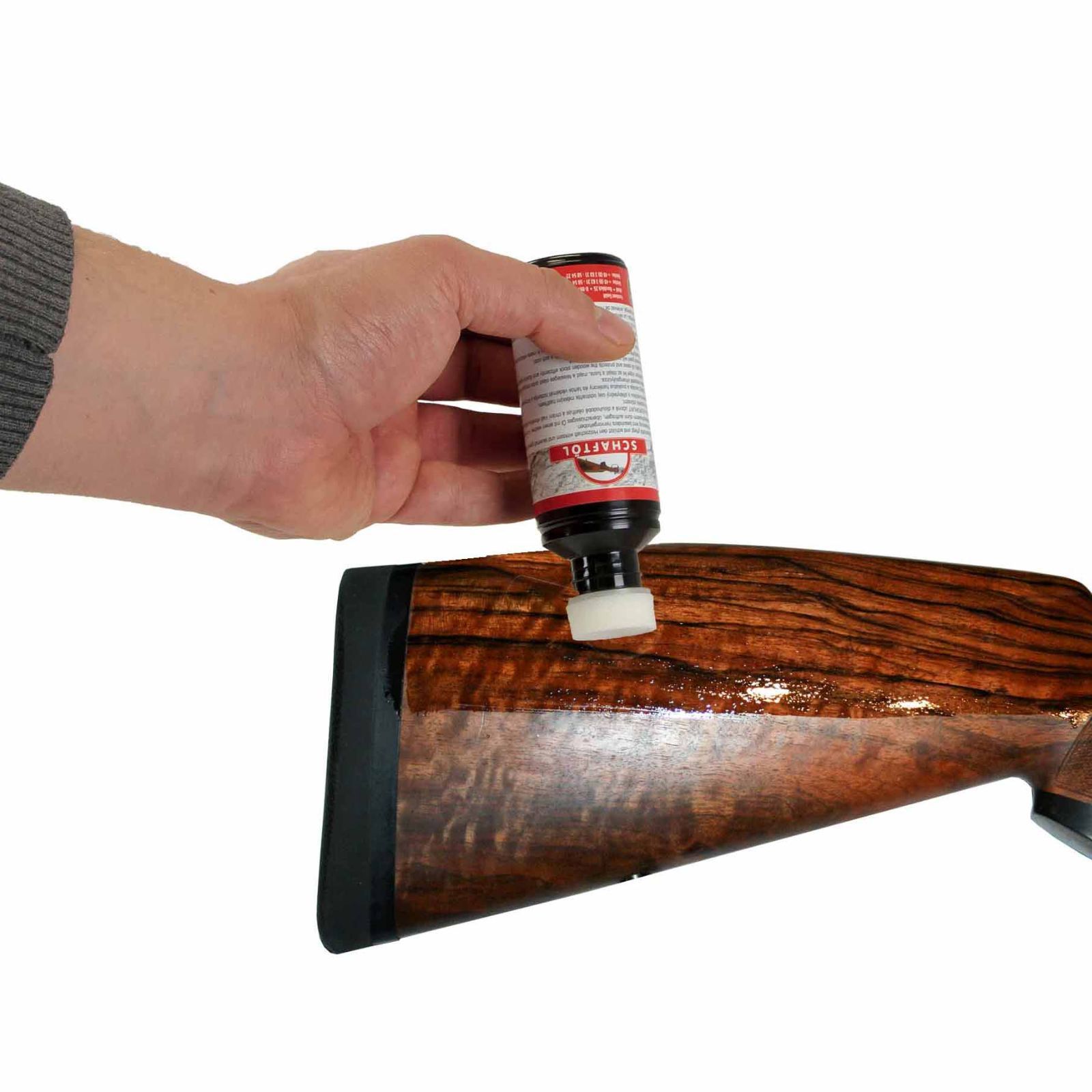 The special quality of this shaft oil is shown in simple handling and excellent results. With its practical Spread sponge it is easy to apply. The result is a well -protected and beautiful shiny wood that increases the aesthetics of your weapon.