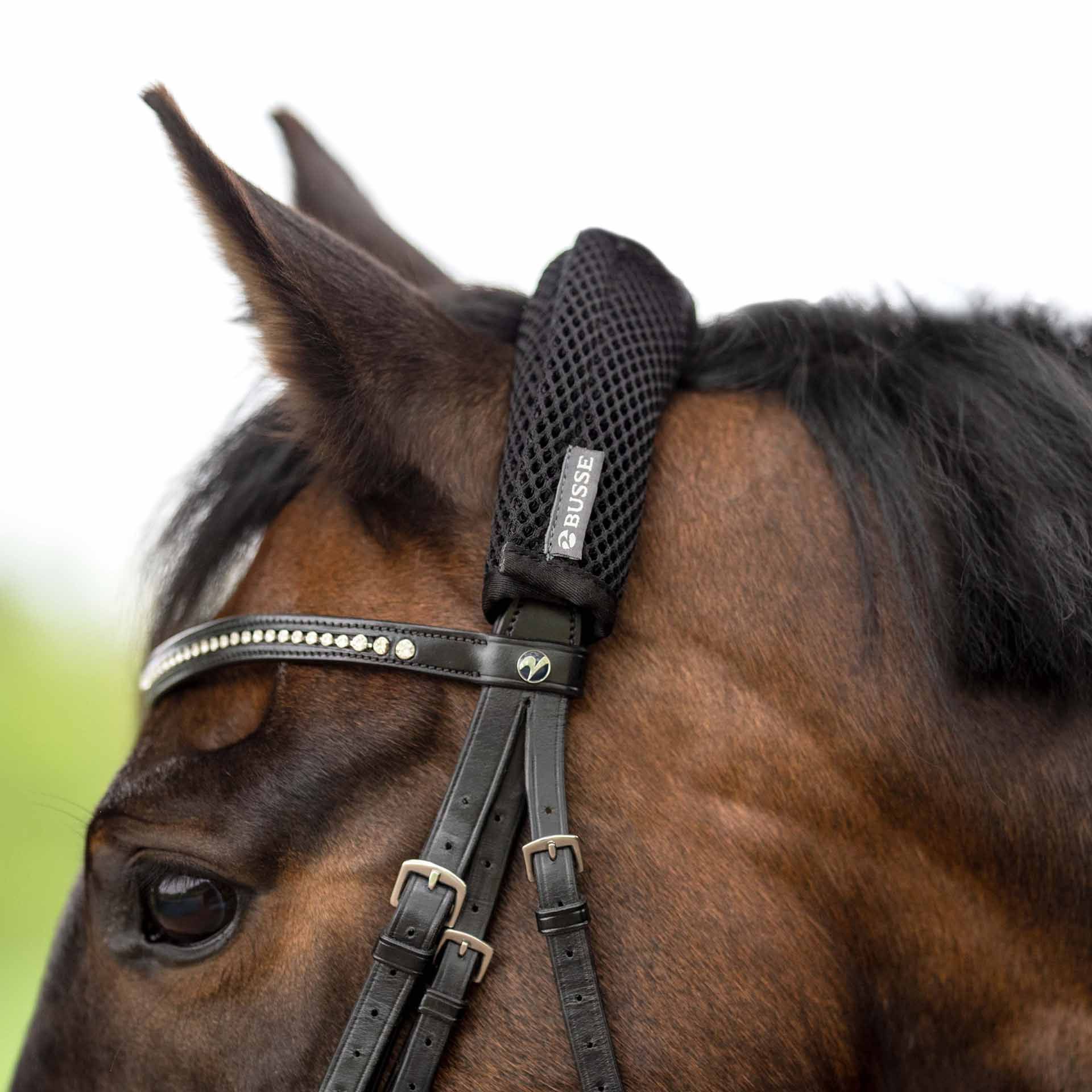 The buses nasal, Genickschoner 3D Air Effect is ideal for riders who want to improve the comfort and skin protection of their horses. It is particularly useful for skin, fur-sensitive and pressure-sensitive horses on the head and can be used both in summer on the paddock/on the pasture as well as when riding, where heat build-up and sweat under leather, neoprene or fur pads quickly lead to problems can.