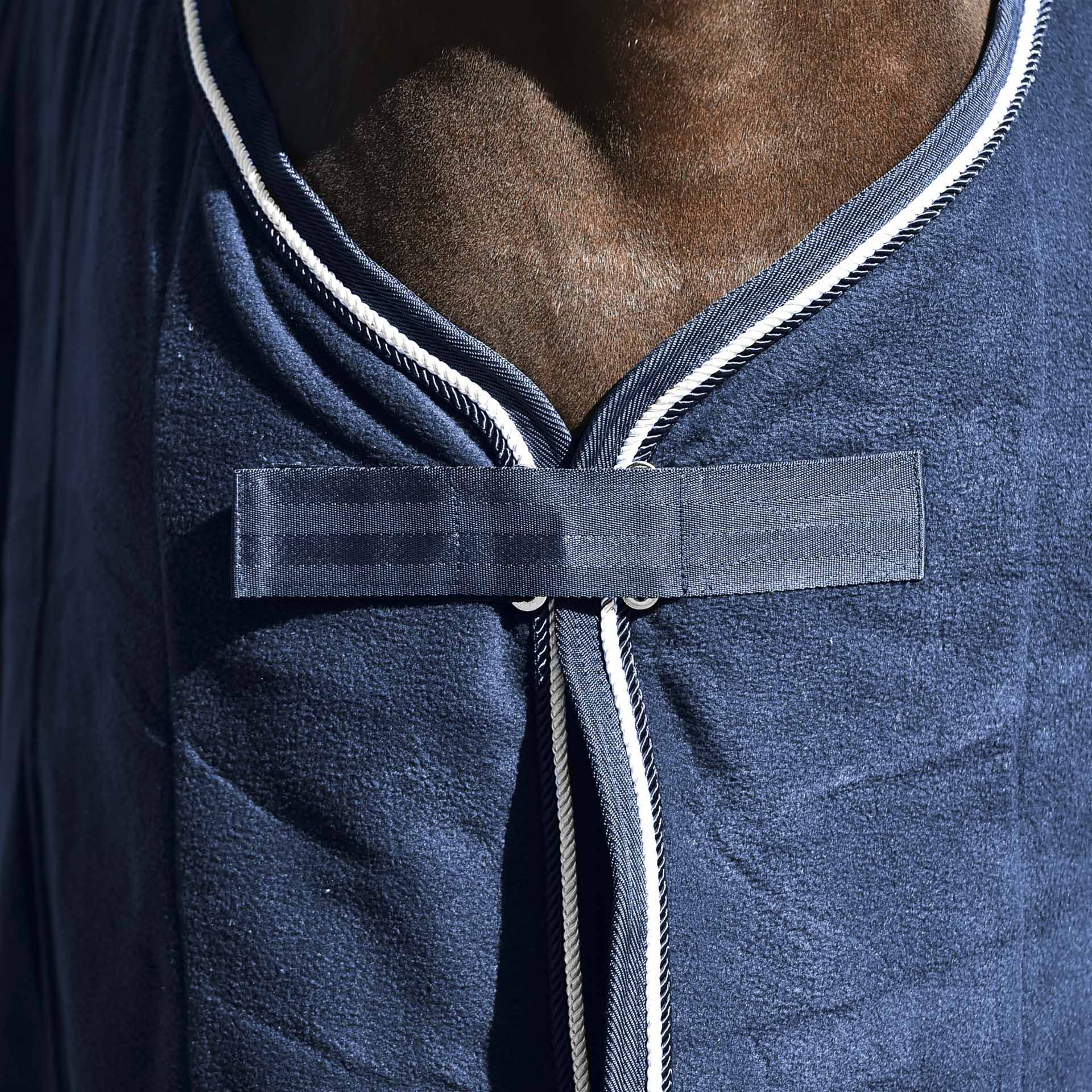 - chest closure with metal rug buckle, covered