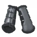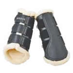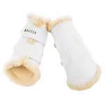 Gaiters offer protection for the horse's legs during training. When using fur gaiters, the outside temperature should be taken into account in order to minimize the risk of the horse's legs overheating. It is important to only put on the gaiters shortly before the start of the training session and to take them off again immediately after the training has finished. This prevents unnecessary heat build-up. Regularly check the temperature of the horse's legs during and after using the boots and cool them if necessary to avoid overheating.