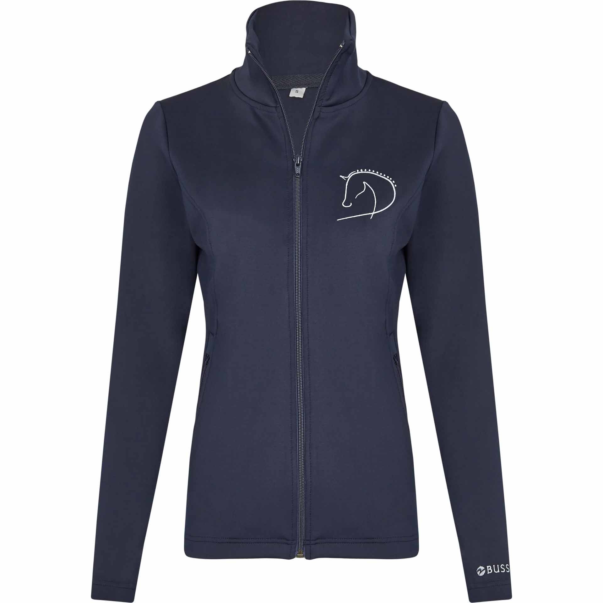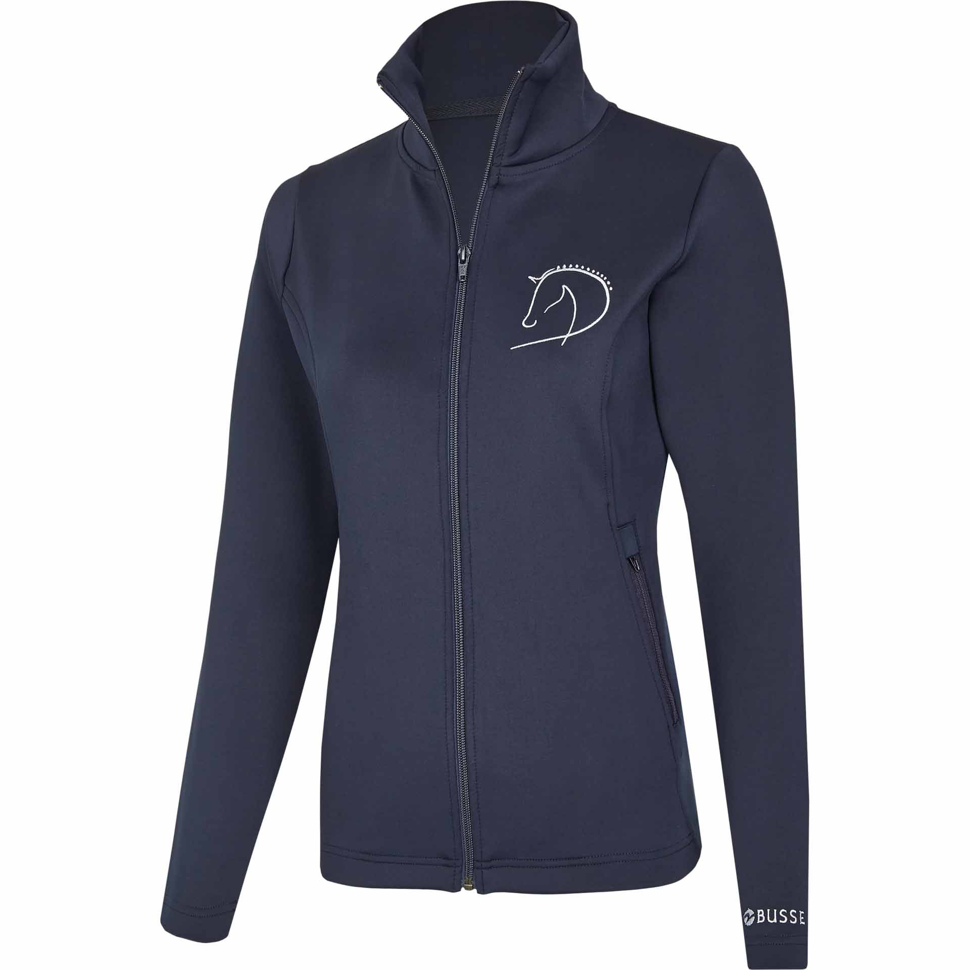 The sporty, deliberately subtle design with the classic horse head embroidery on the left breast in white gives the jacket a fashionable note. The smooth material surface ensures that dust and dirt do not get stuck, while the two spacious zipper front pockets offer useful storage space.