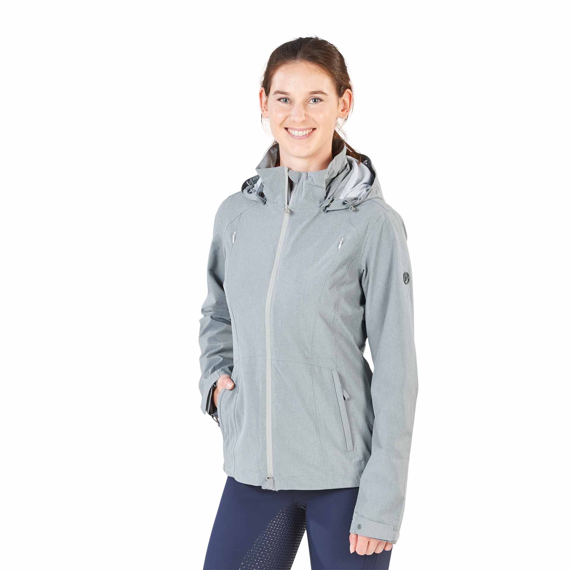 This jacket, especially for riders, offers a waterproof 2-way main stream with chin and hem protection as well as saddle protection to protect the leather. It has unobtrusive ventilation zippers on the breast seams, with network fabric, reflective piping on the pockets and in the lumbar area, an internally adjustable, elastic trim of cord in the waist area for individual adaptation and a regulator and removable hood that can be fixed for riding in the back area. // P>