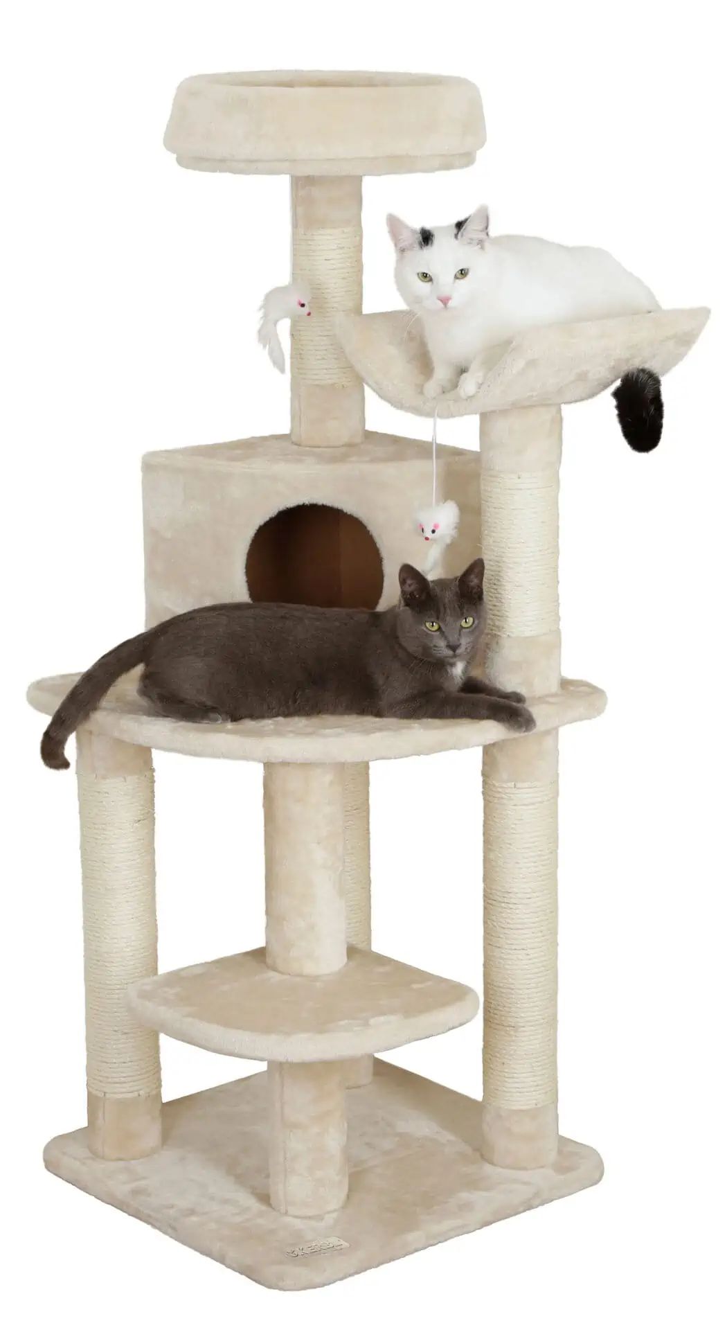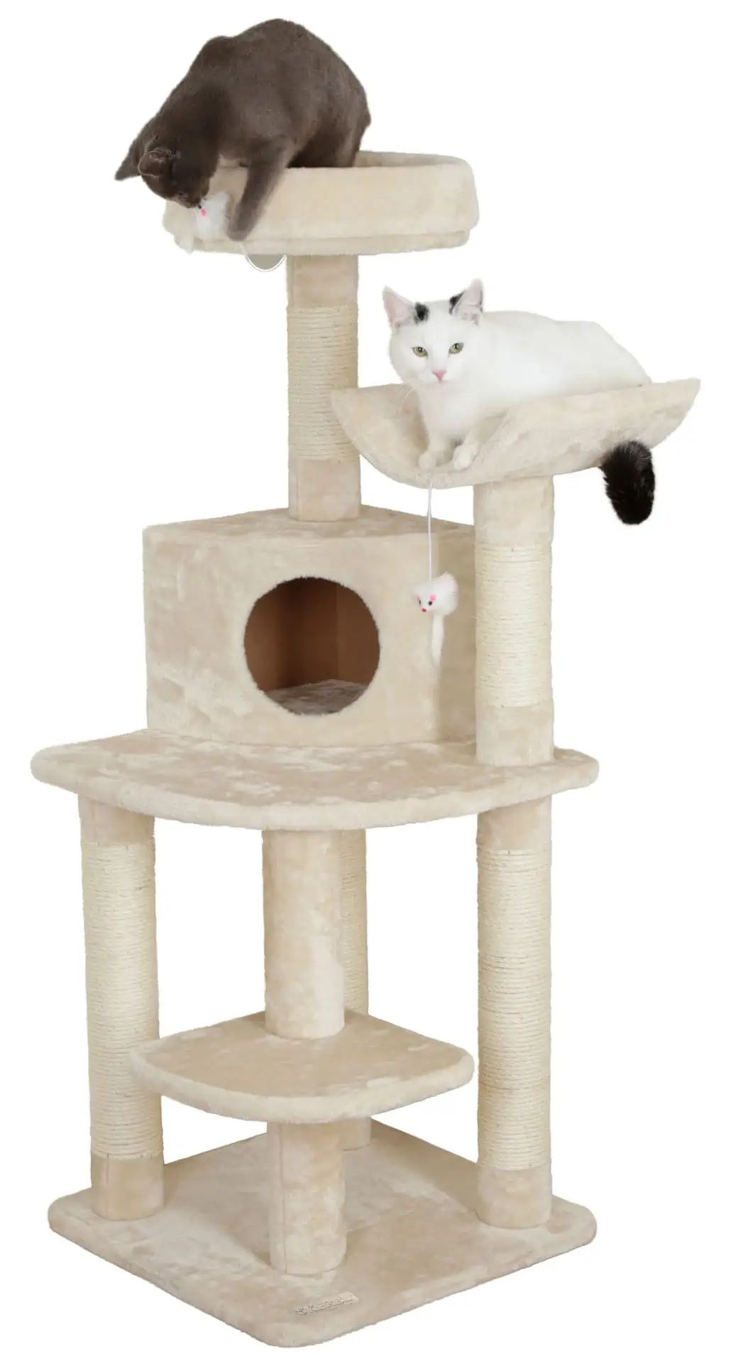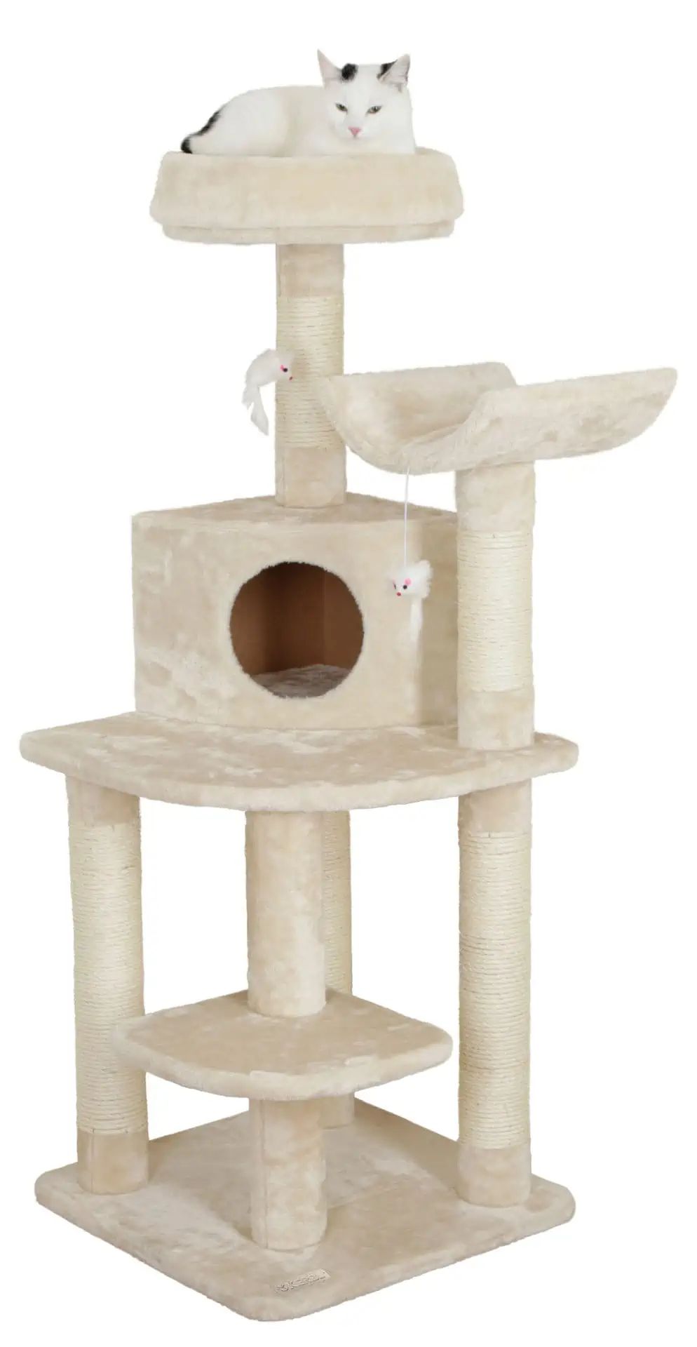 Sisal on the pillars of the Zirconia corner scratch tree offers your pet a suitable surface to claw. This can help protect your furniture from scratch damage.