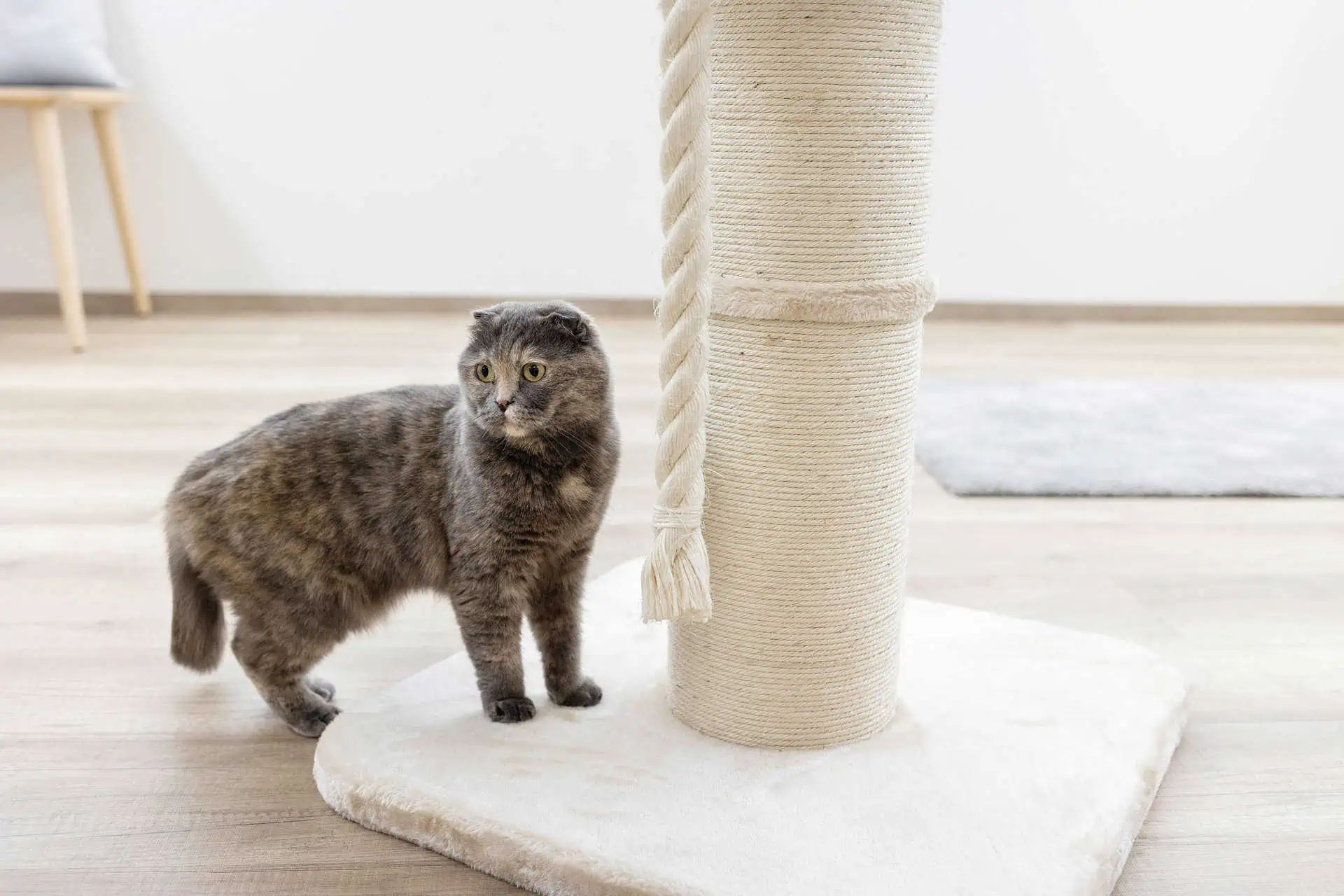 The scratching tree Toni XL has an extra strong base plate and a thick scratch column that is wrapped with a high -quality, 5 mm thick natural rope. He also has a large, comfortably padded lying surface and a robust Sisal game rope.