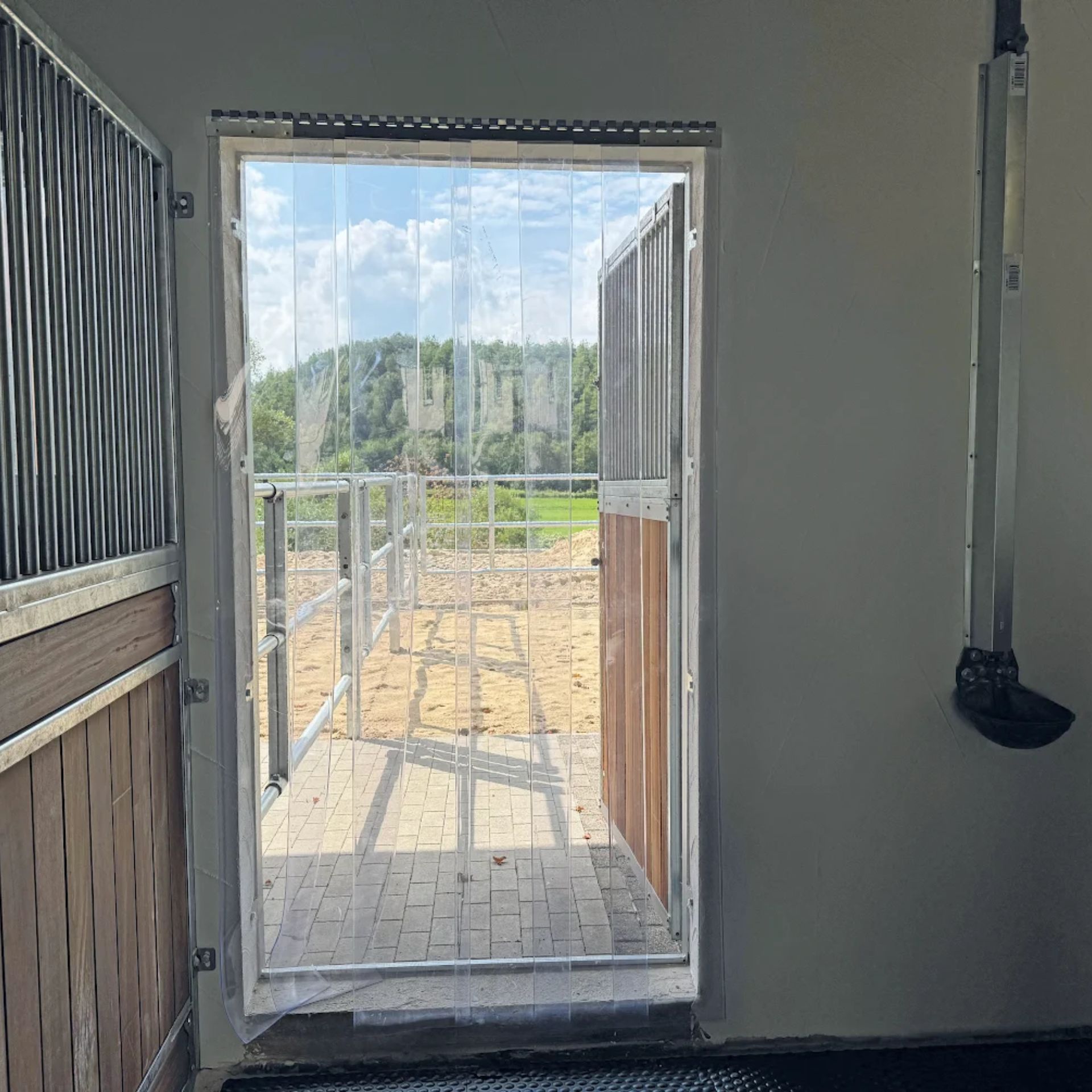 The Pendulum Door Foil Set with a width of 1.30 m is the ideal solution for paddock and stall doors, providing reliable protection against draughts, dust, and insects without restricting the movement of humans or animals. The set comes fully pre-assembled, allowing for a quick and uncomplicated installation.