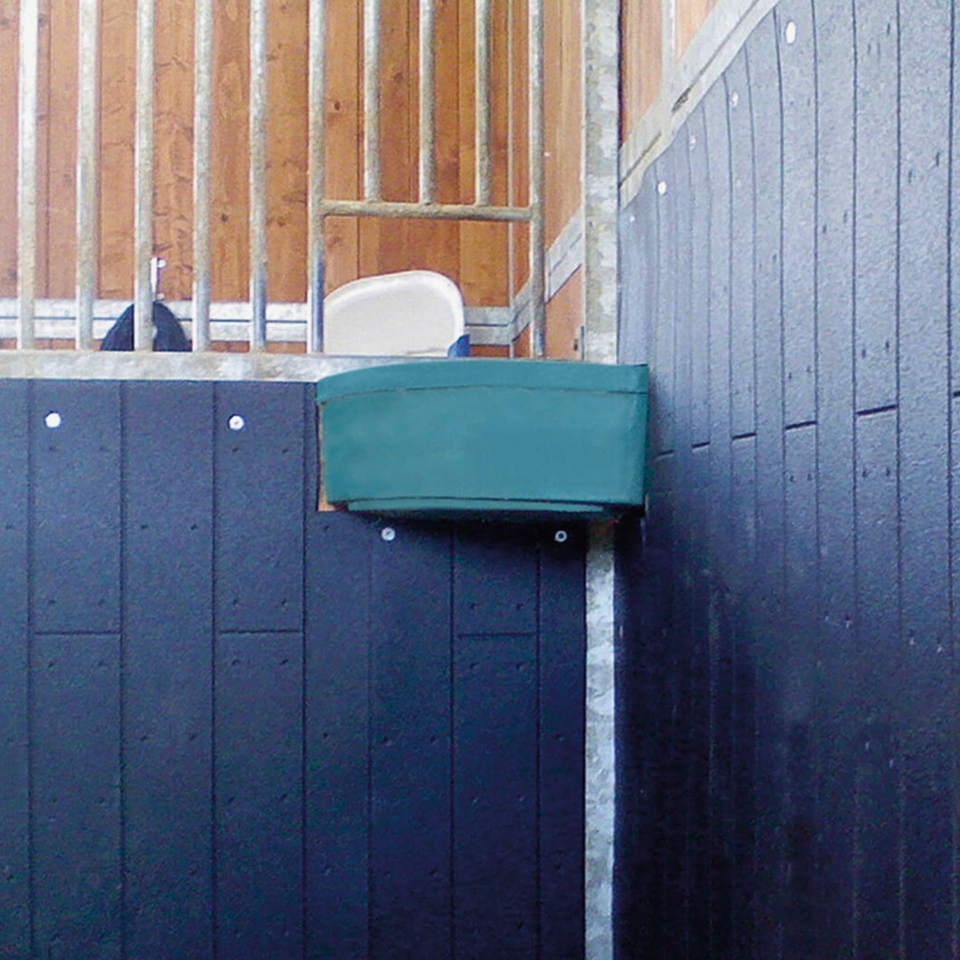 The rubber mat can be either fully glued or screwed on. It is easy to cut to size, making installation particularly easy. The safest method is mounting with curved washers to prevent the horse from getting caught on the fastening.