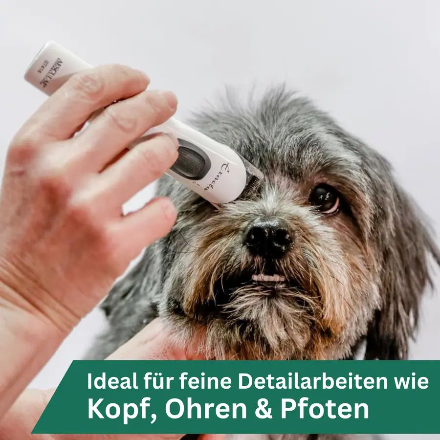 A standout feature of the Aesculap Exacta is the additional replacement blade included in the package. This allows for a seamless transition during clipping and ensures continuous, comfortable grooming. Furthermore, the clipper impresses with its extreme quietness and vibration-free operation, making the clipping experience pleasant and stress-free for both you and your pet. Weighing only 115 g and featuring a slim design, the clipper fits comfortably in your hand and allows for effortless work, even over longer periods. Additionally, the Exacta is a "MADE IN GERMANY" product, renowned for its superior quality and reliability. Trusted by dog owners and professional groomers for years.