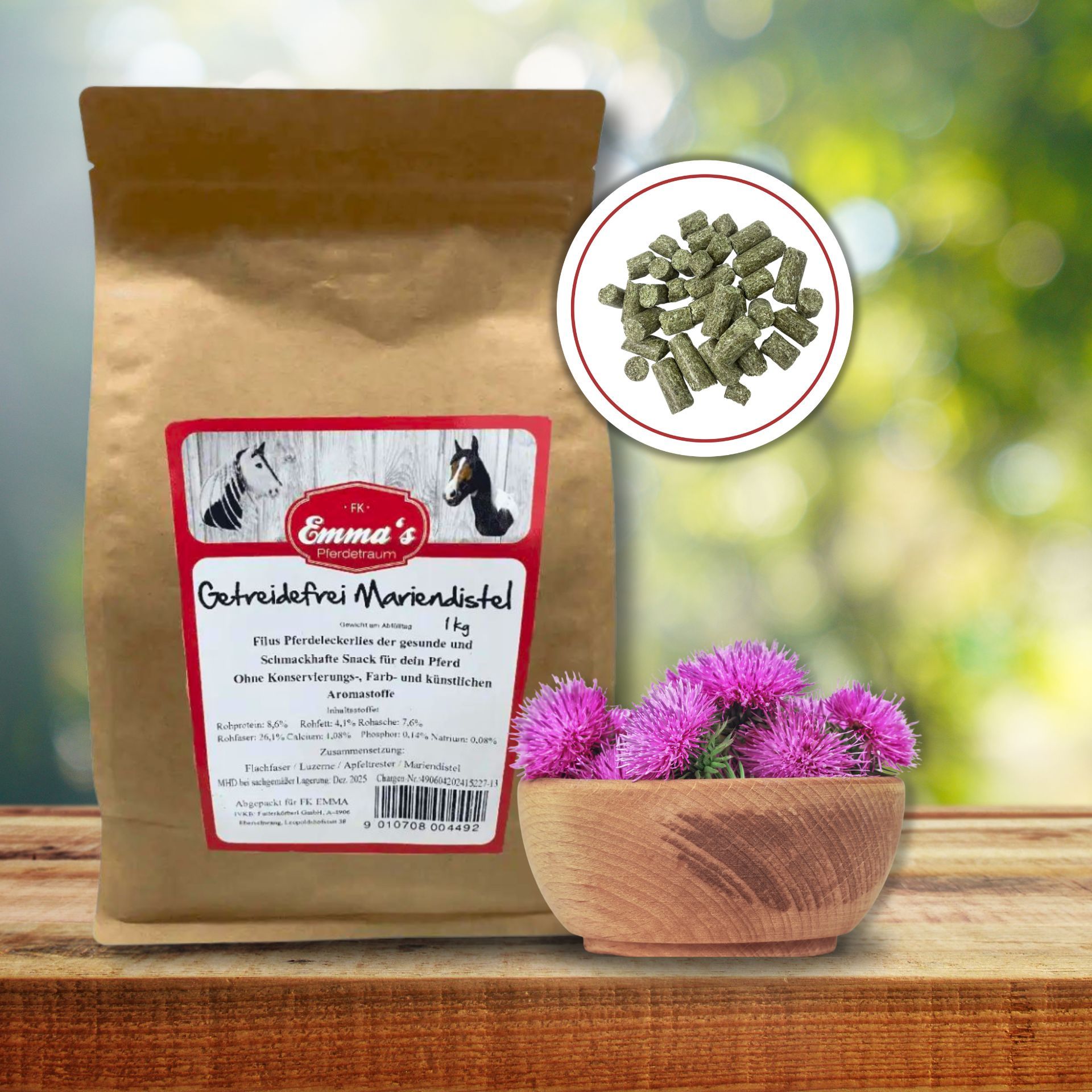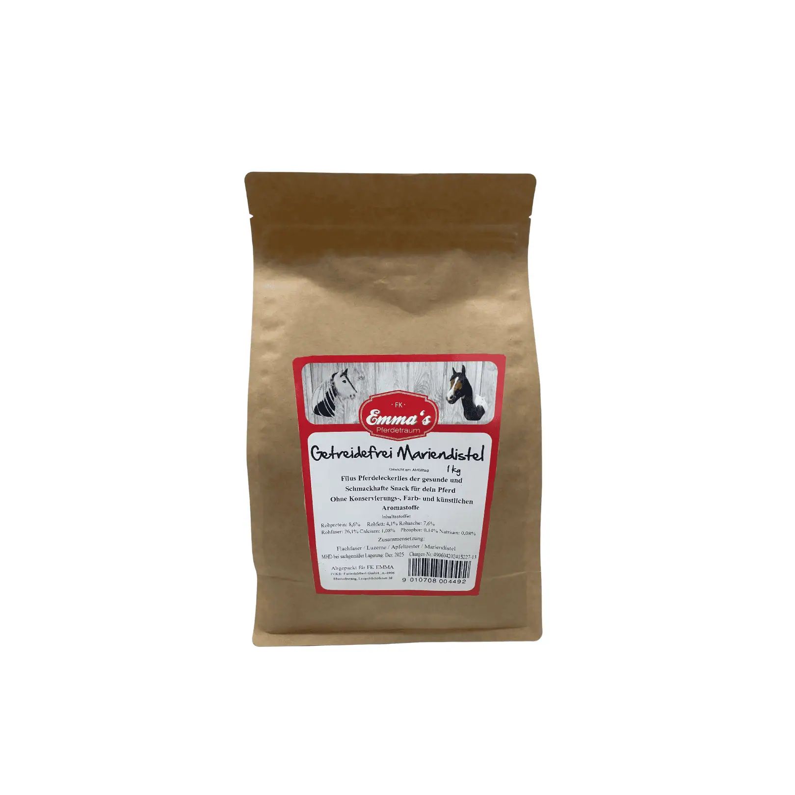 Emma's Grain-Free Horse Treats with Milk Thistle are the perfect reward for your horse. These treats not only serve the purpose of pampering your horse but also offer numerous health benefits. Made from 100% natural ingredients, free from any artificial colors and preservatives, and without flavor enhancers, these treats are particularly gentle and healthy. They are produced in a small mill in Germany, ensuring high quality and adherence to the strictest production standards.