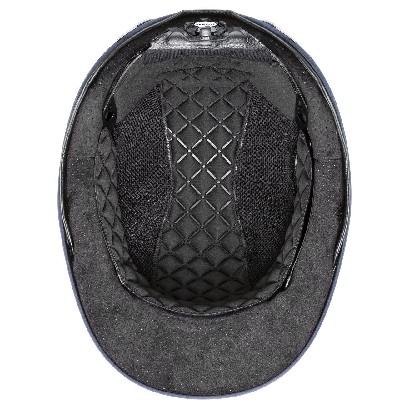 Made in Germany, the uvex Reithelm exxeed jewel impresses with its elegant vegan leather straps with an adjustable Y-divider, providing additional comfort and a secure fit. Available in satin black and satin navy, it offers an individual style statement for every ride. The combination of a robust outer shell and an EPS inner shell also provides pleasant cold insulation.