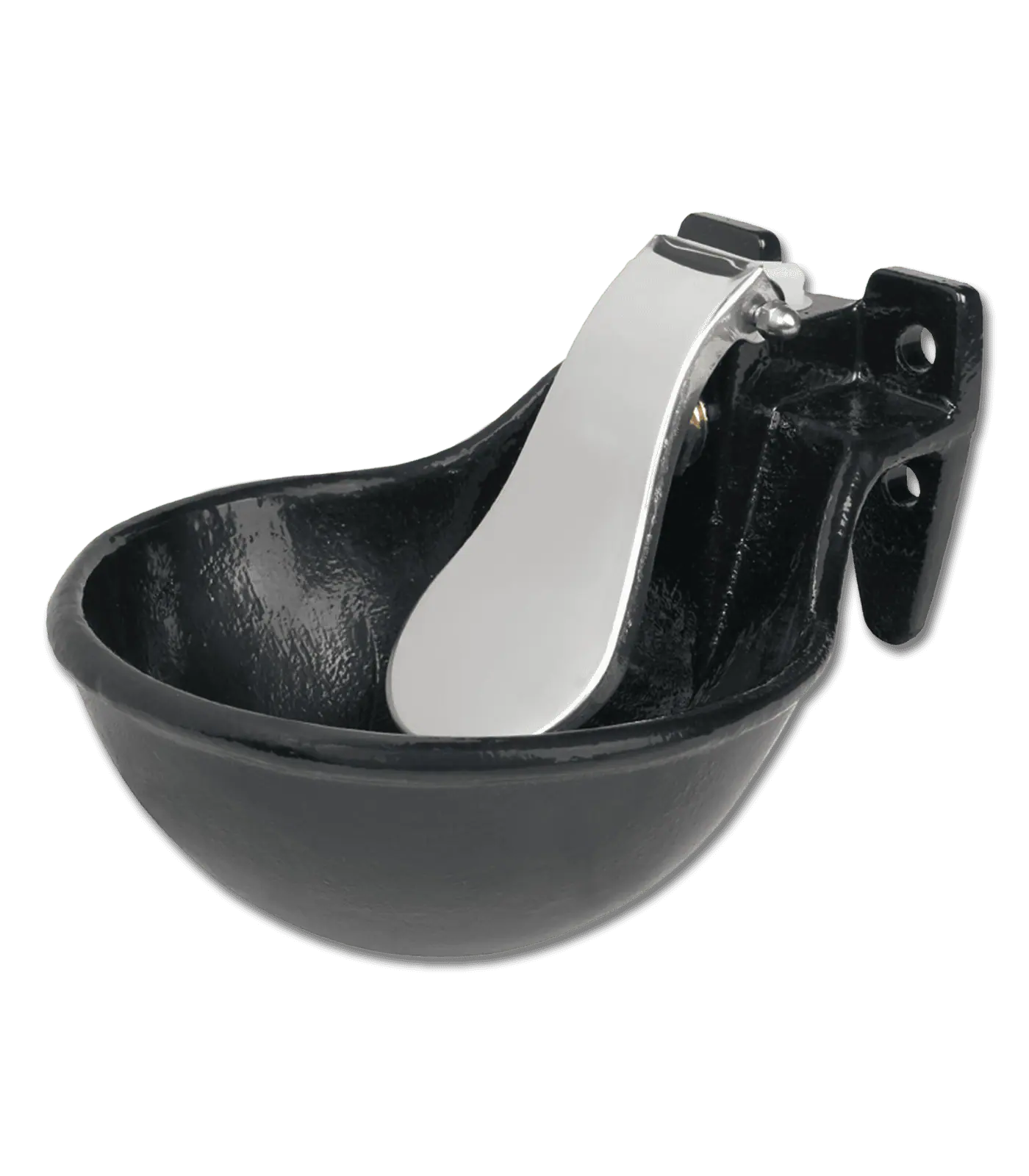 Classy drinking bowl with stainless steel drinking tongue and large drinking bowl. Made from powder-coated metal, black. Water supply connection (1/2inch) possible from both above or underneath. To be attached to the wall or pipe.