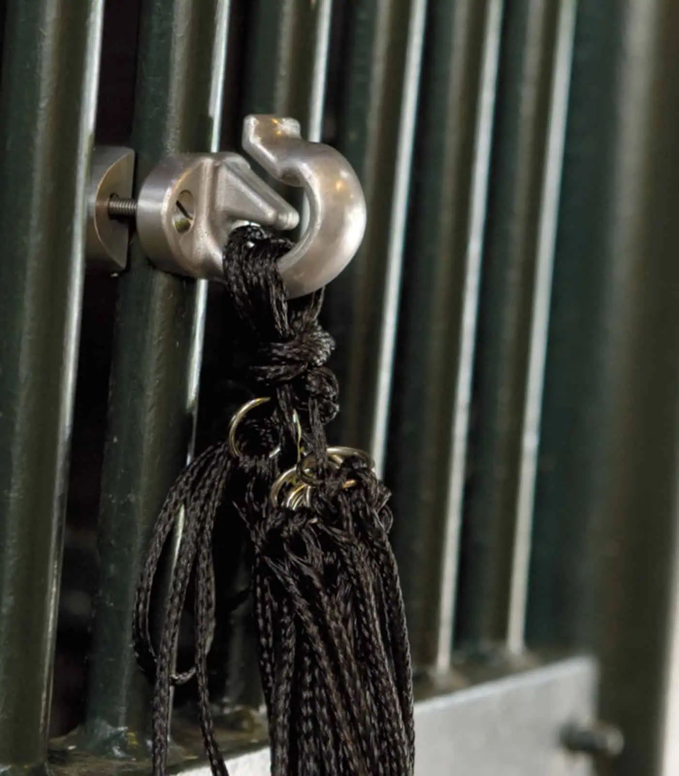 Practical holder - versatile in use - whether for hanging up haynets or licks - in the stable, paddock or trailer. Rounded edges minimize the risk of injury. Can be fixed to smooth surfaces or poles 10mm-40mm in diameter. Made of high quality, solid aluminium.