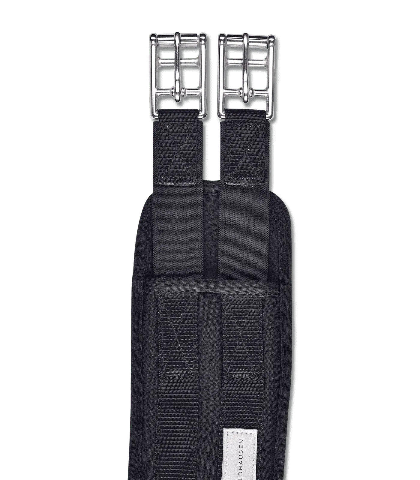 This anatomically shaped girth is made of skin-friendly material and prevents pressure points. Integrated gel-insert and elasticated on one side. Stainless steel roller buckles.