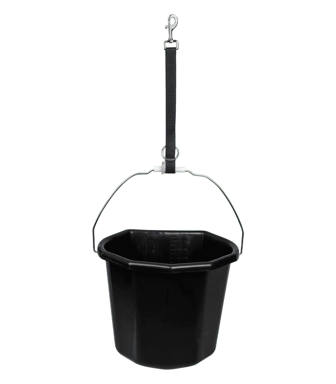 Sturdy nylon webbing holder with stable carabiner for hanging up bucket or other objects