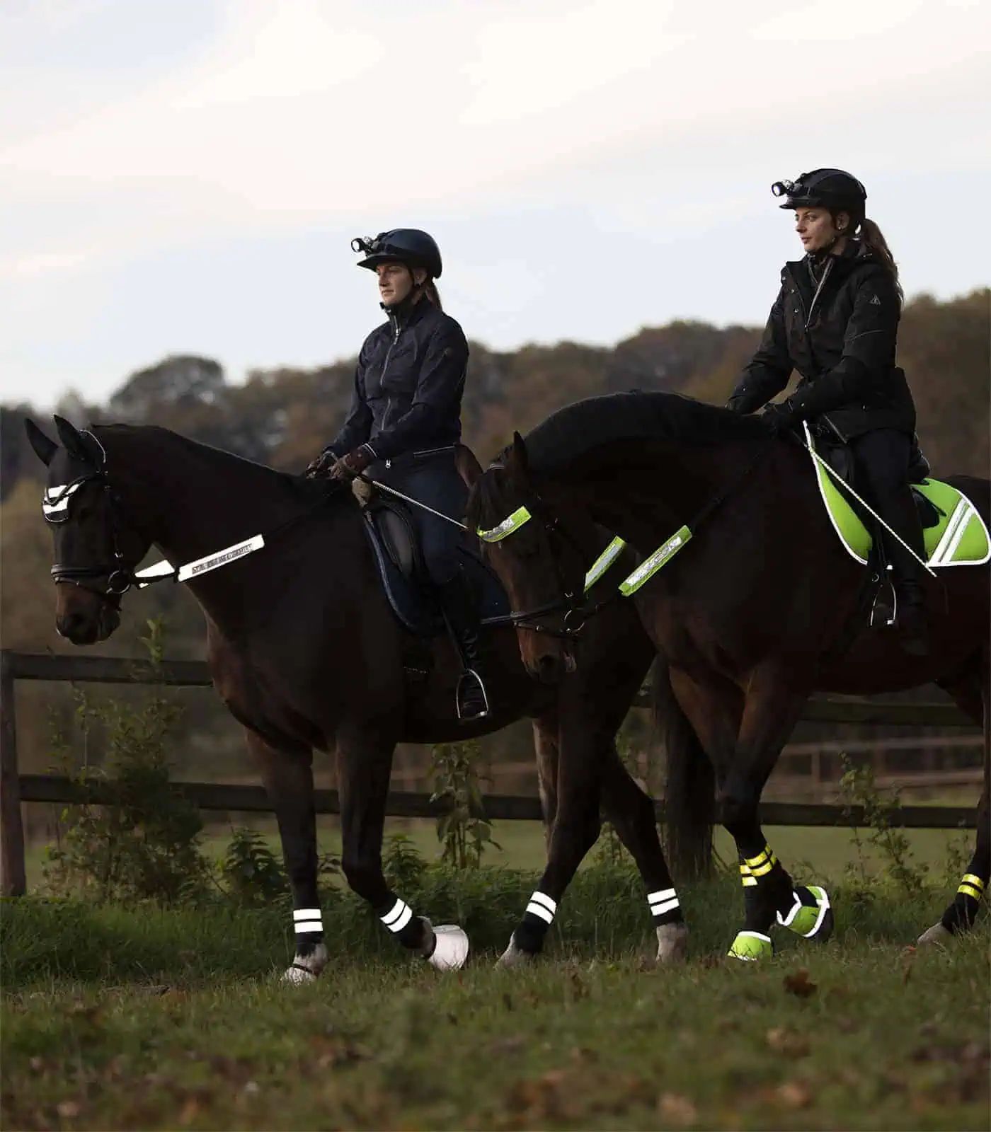 Set of three highly visible covers with silver reflecting stripes. Easy to attach to the bridle or reins.