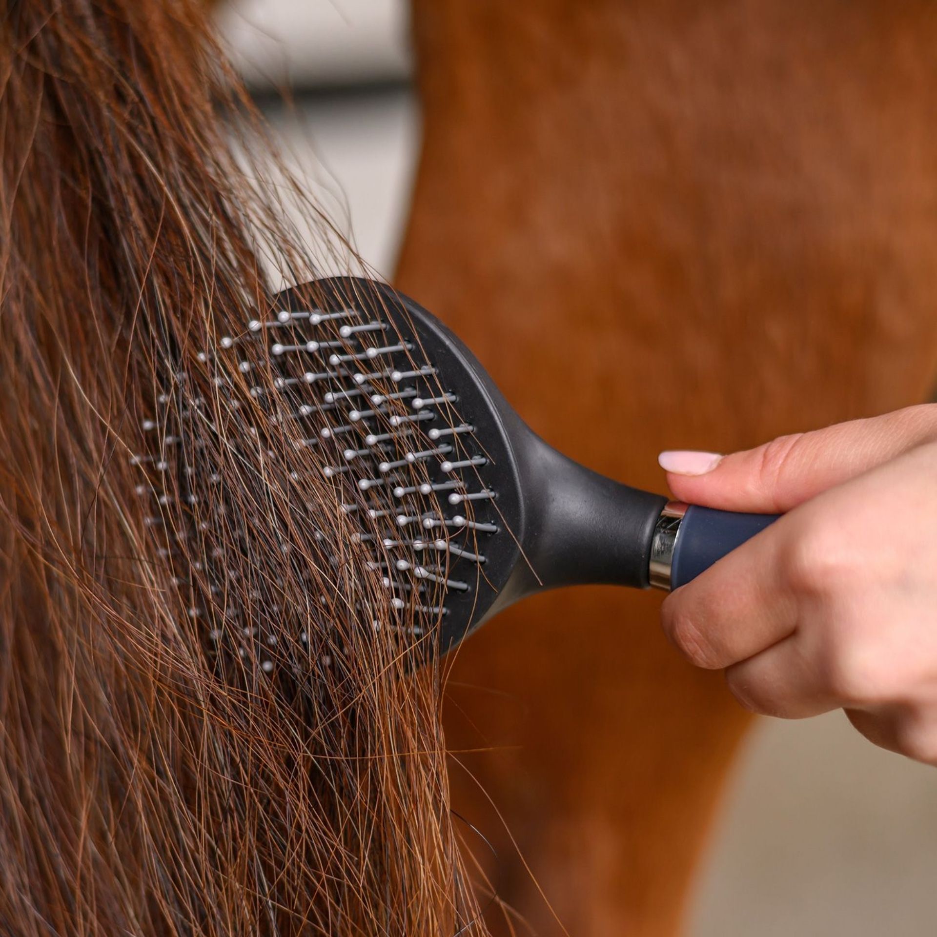 Ergonomic design for comfortable grooming. Rounded bristles for gentle care.
