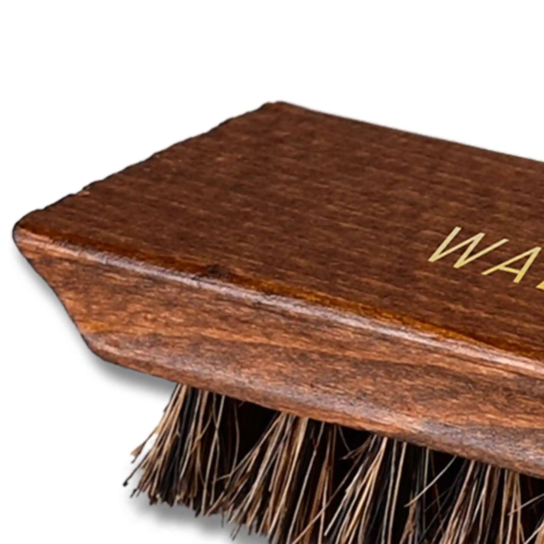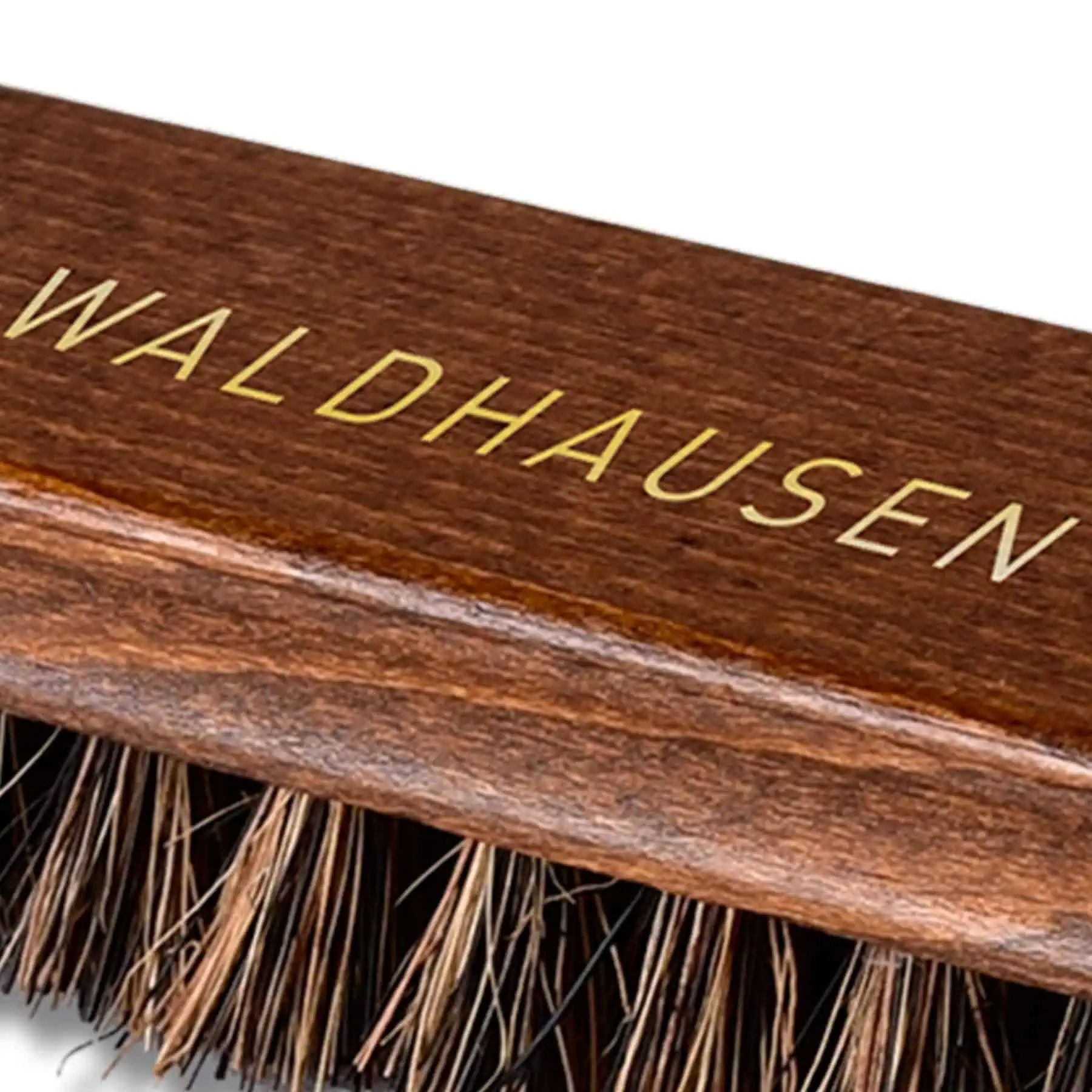 Exclusive dirt-removing brush with pointed wooden back. The side grip hollows ensure perfect handling.