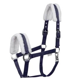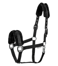Fluffy halter with soft padding in synthetic fur on headpiece and noseband. Adjustable on both sides at headpiece.