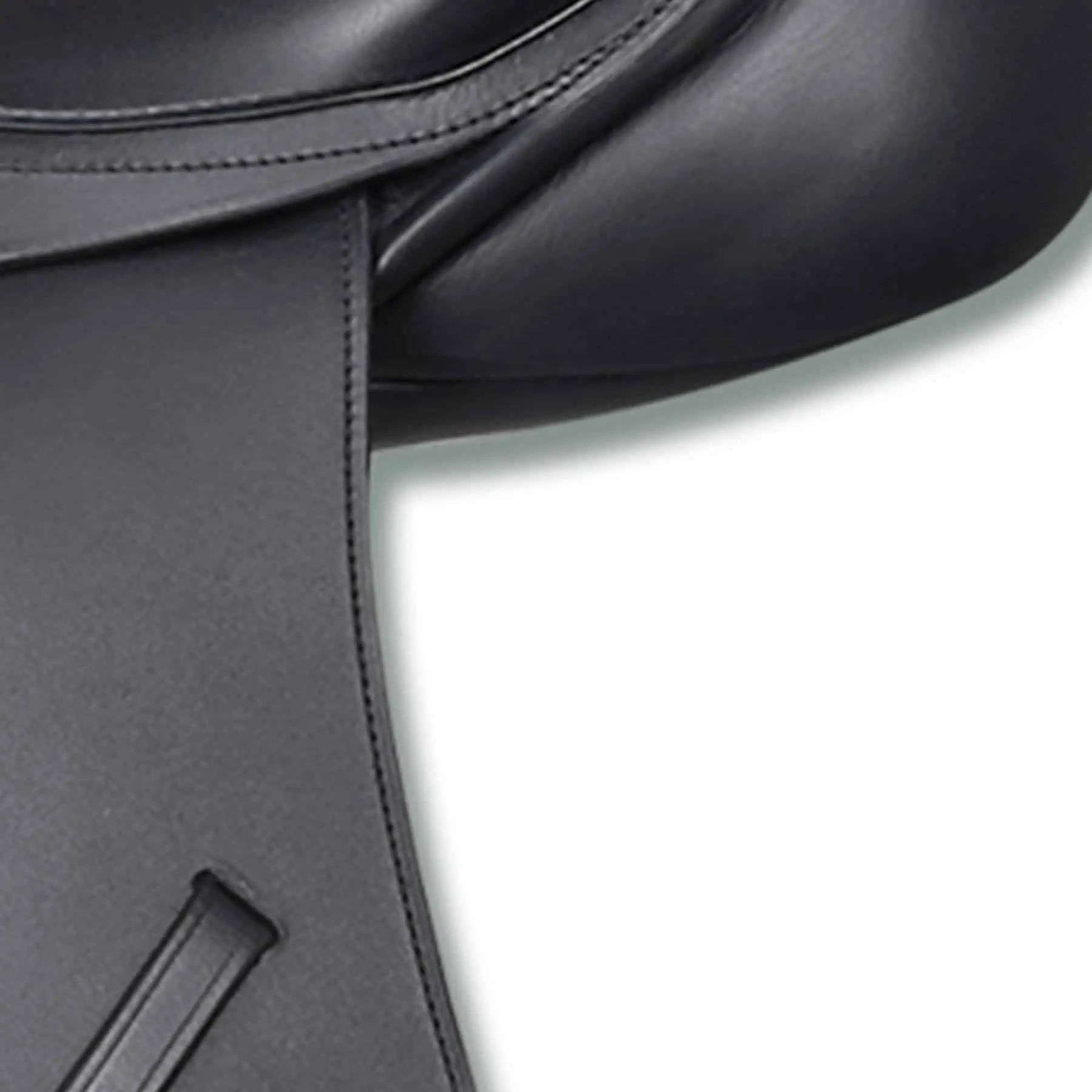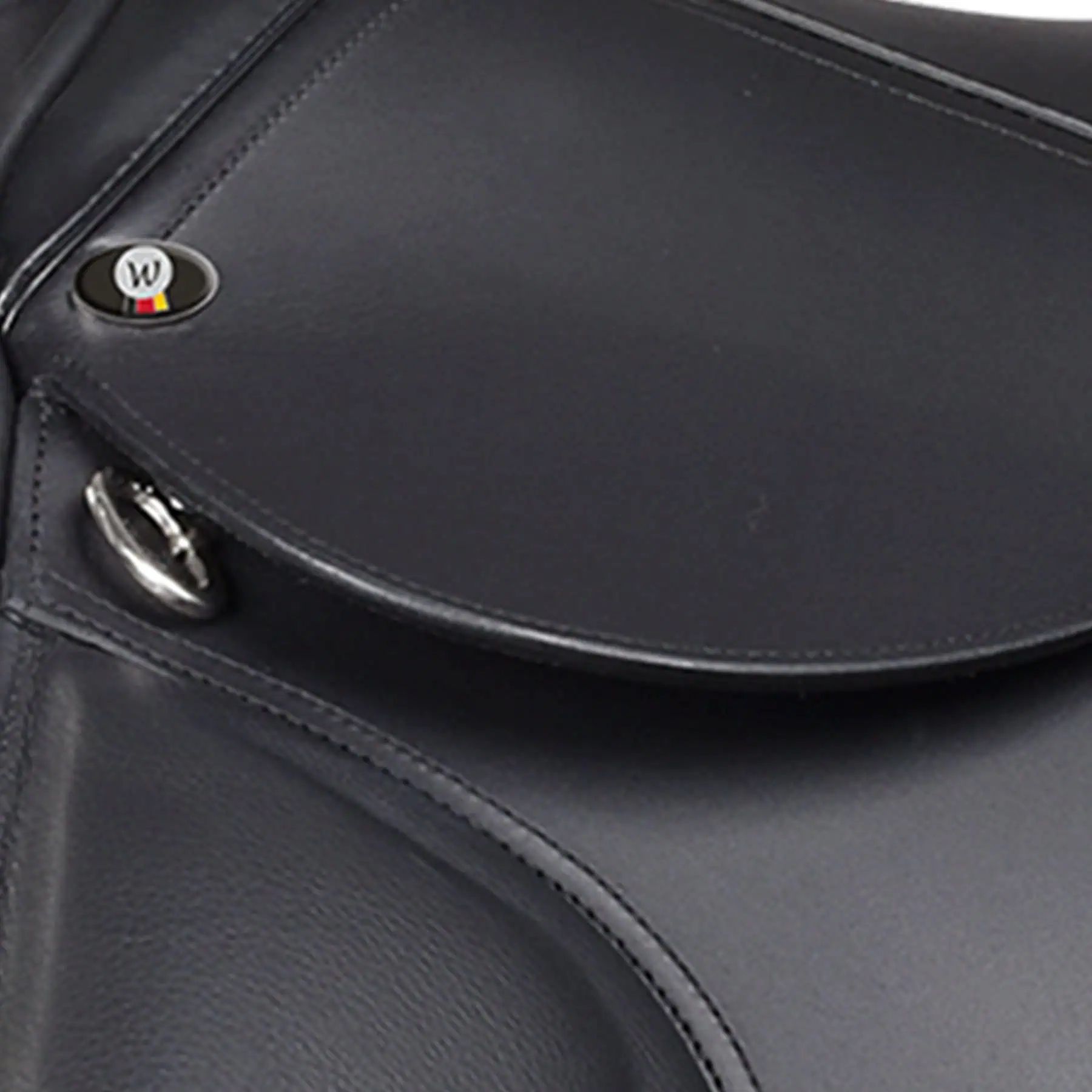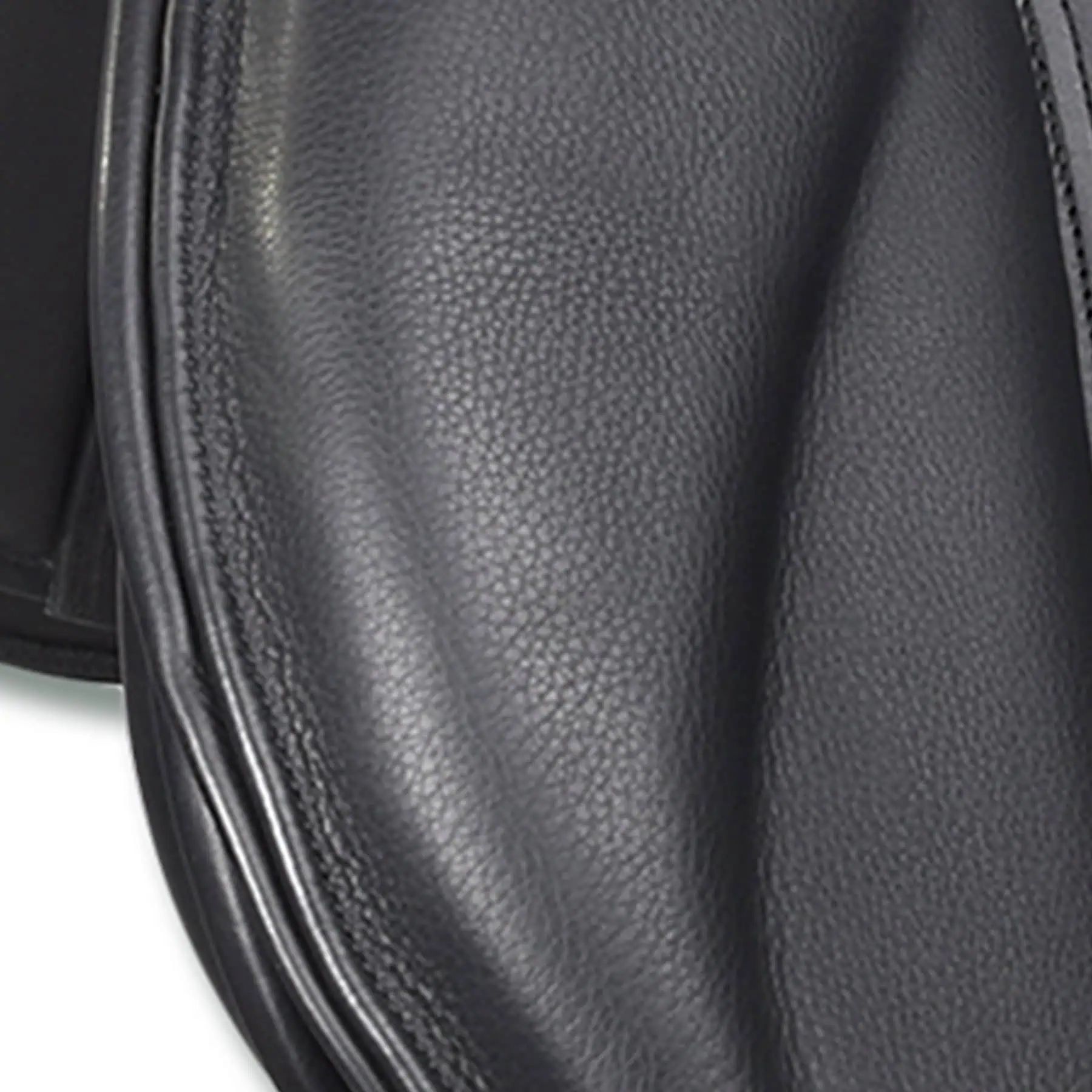 This saddle consists of high quality full-grain leather and offers a very soft, comfortable and grippy seat. In addition it provides an elastic synthetic tree, an exchangeable/ replaceable gullet and adjustable knee blocks - simply a high quality saddle for the demanding rider. This saddle comes with 2 pairs of adjustable and exchangeable knee blocks plus a fleece/600 denier polyester protection cover.