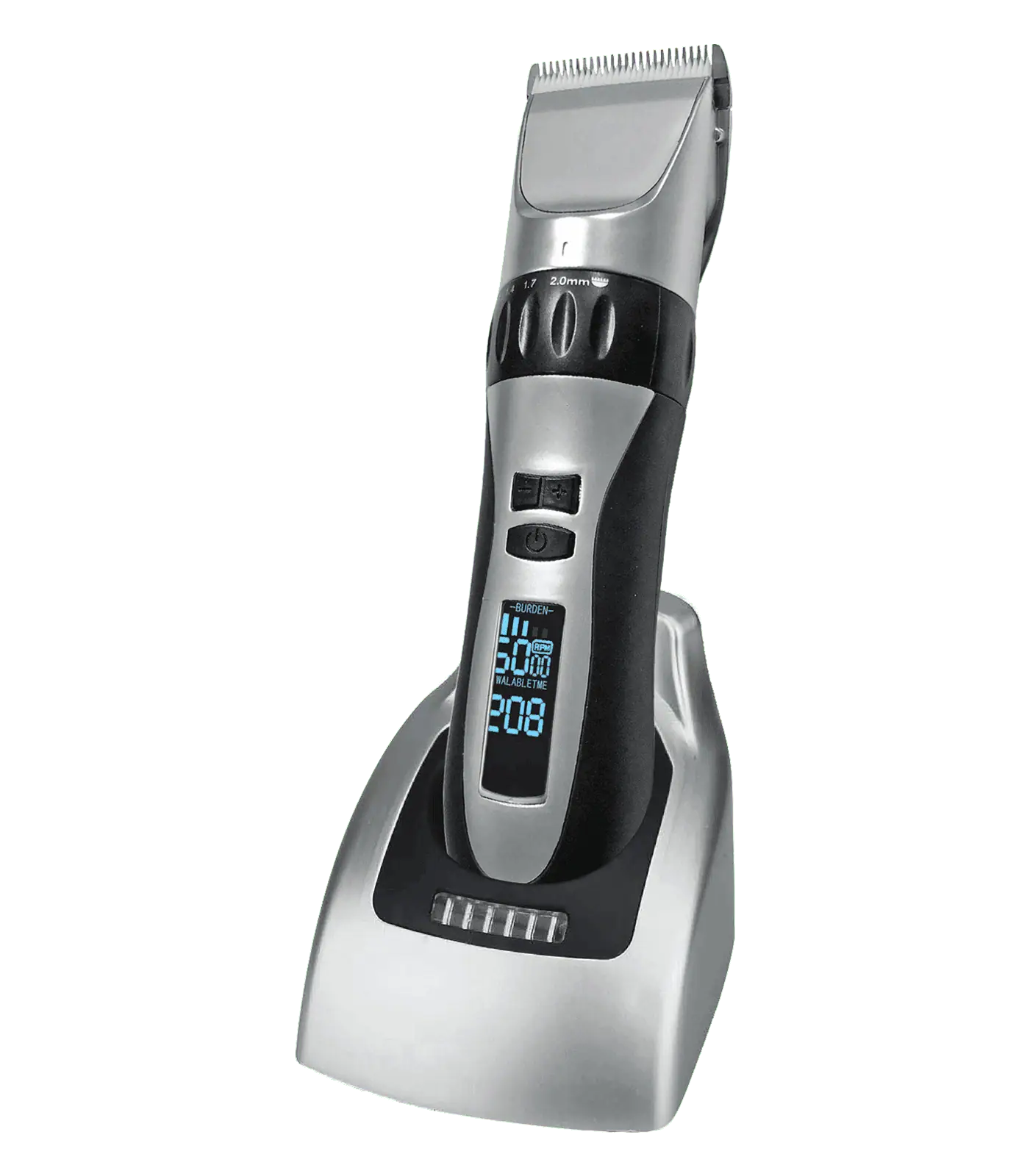 Practical handy clippers which can be used either with batteries or power supply, for trouble-free clipping of sensitive body parts or edges. Incl. 4 seperate comb attachments, oil bottle, cleaning brush, power cable and practical charger. Supplied complete in a quality case.