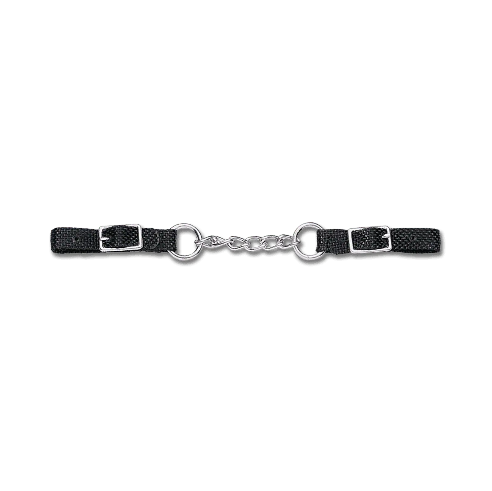Robust, adjustable perlon curb chain with leather buckles for riding on bit/Western bit.