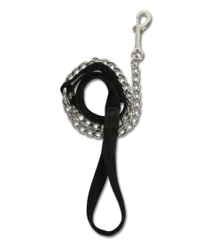 Pleasantly soft webbing with a glossy chain. Equipped with a carabiner.